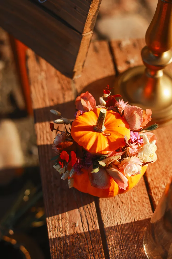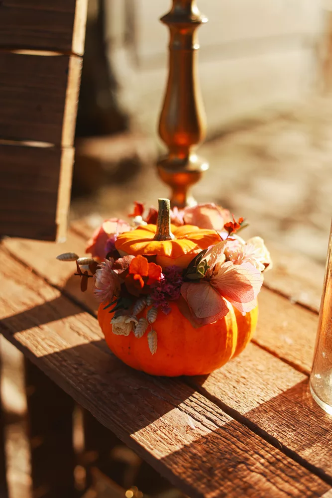 Venez décorer UNE petite citrouille de fleurs séchées lors d’un atelier créatif.