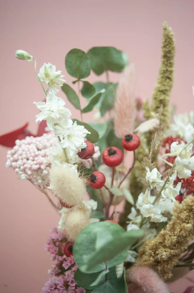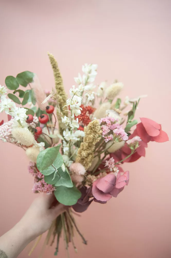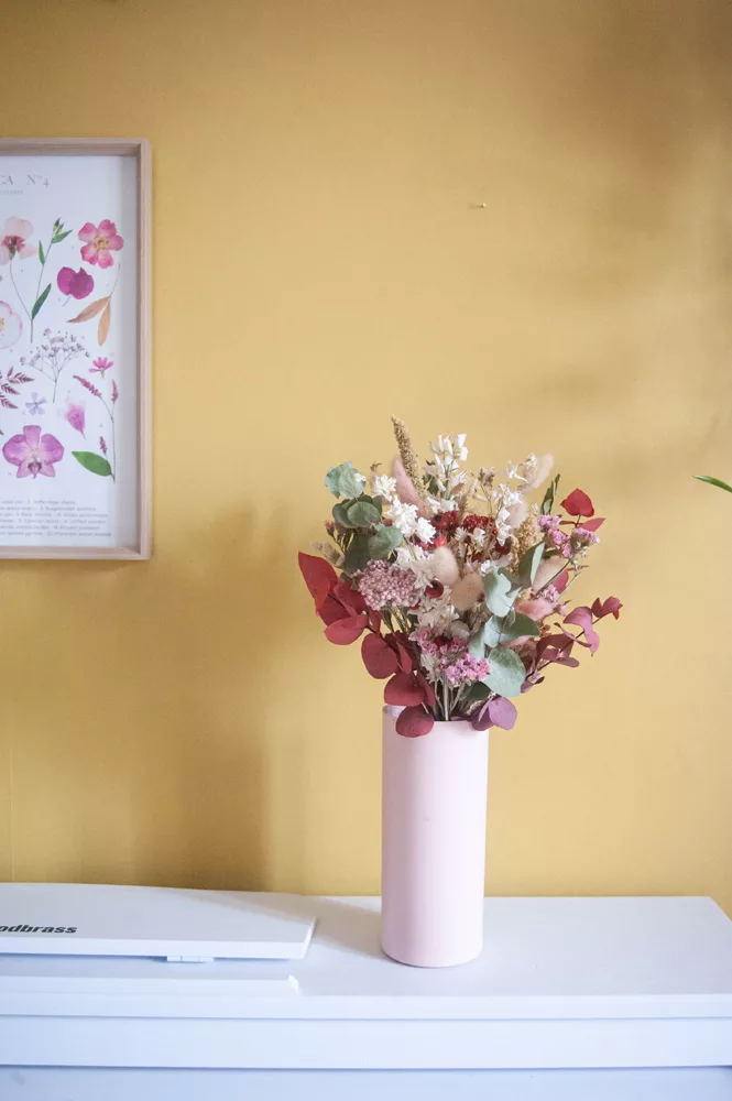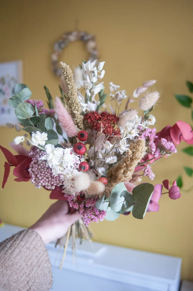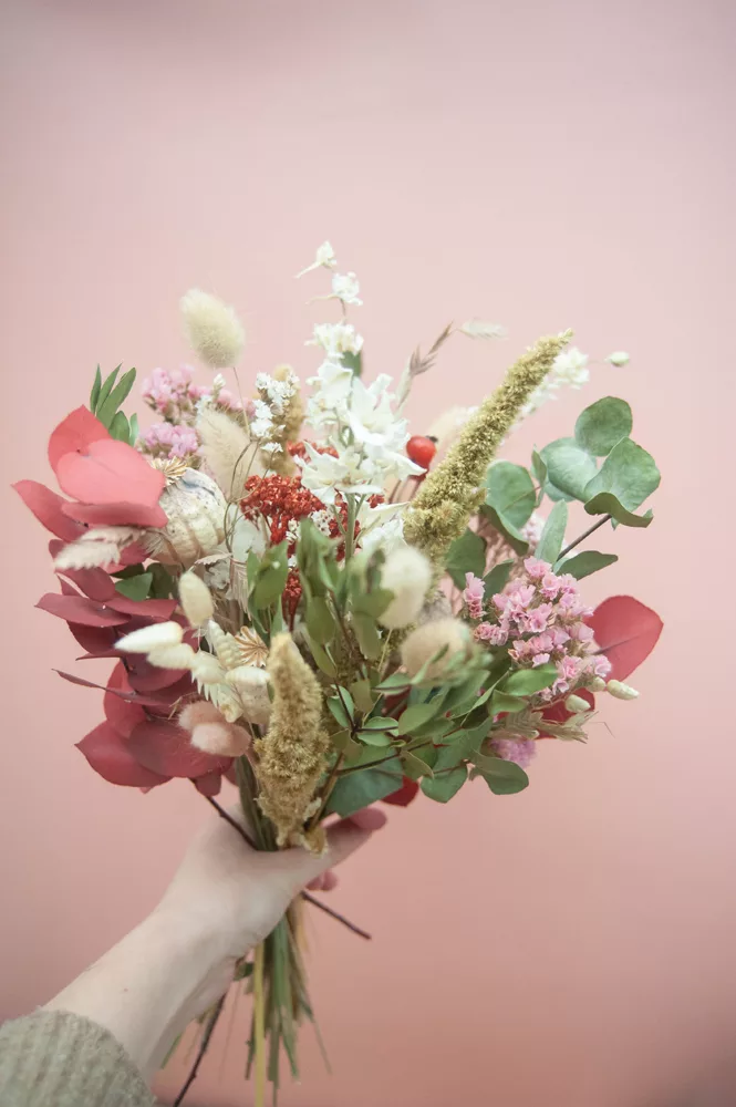 Les avantages des fleurs séchées : Un bouquet qui dure plusieurs mois, voire plusieurs années ! Fini les bouquets qui fanent au bout d’une semaine ! Vous investissez dans une décoration durable et responsable. En effet, entre 50 % et 80 % des fleurs proviennent de producteurs français, dans le respect du mouvement Slow Flower.