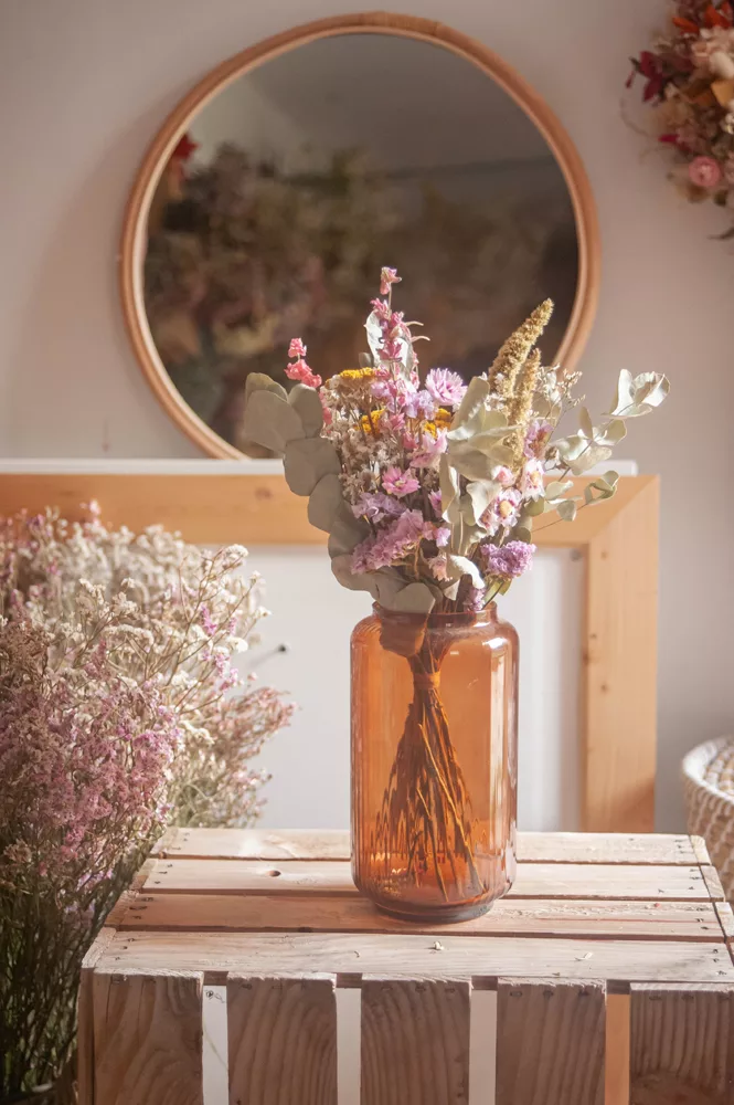 Les avantages des fleurs séchées :Un bouquet qui dure plusieurs mois, voire plusieurs années ! Fini les bouquets qui fanent au bout d’une semaine ! Vous investissez dans une décoration durable et responsable. En effet, jusqu’à 80% des fleurs proviennent de producteurs français, dans le respect du mouvement Slow Flower.