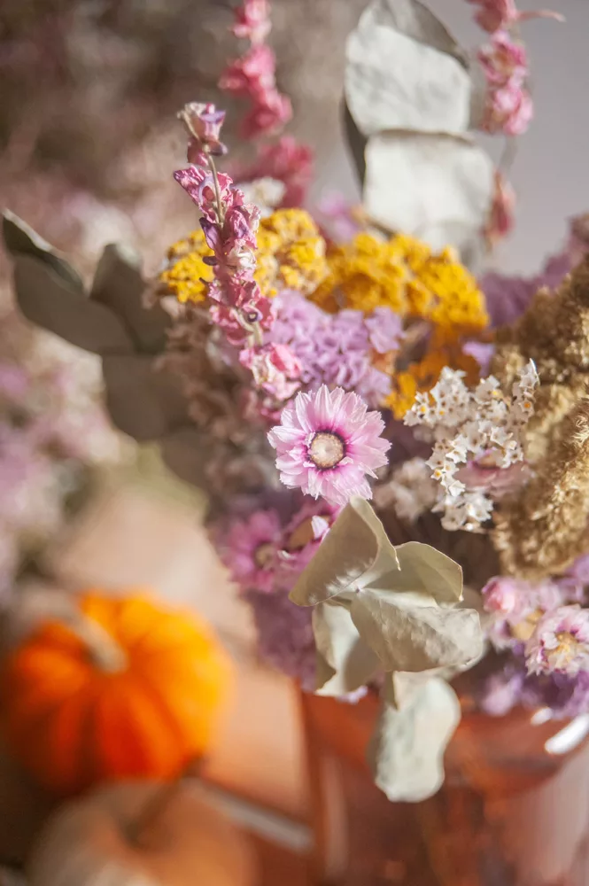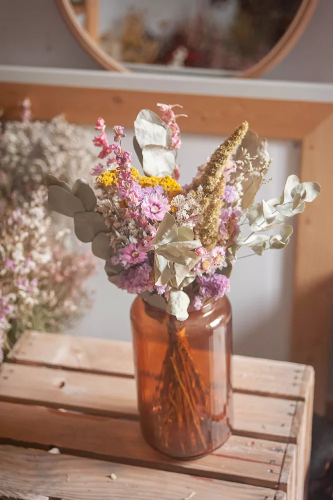Ce que j’aime avec les fleurs séchées, c’est qu’elles durent dans le temps. Ce bouquet ne fane pas, il vous accompagnera plusieurs mois avant que ses couleurs ne s’adoucissent doucement. Une jolie façon de profiter de l’automne et de créer une ambiance cosy dans votre cocon, ou encore d’offrir un cadeau qui a du sens.