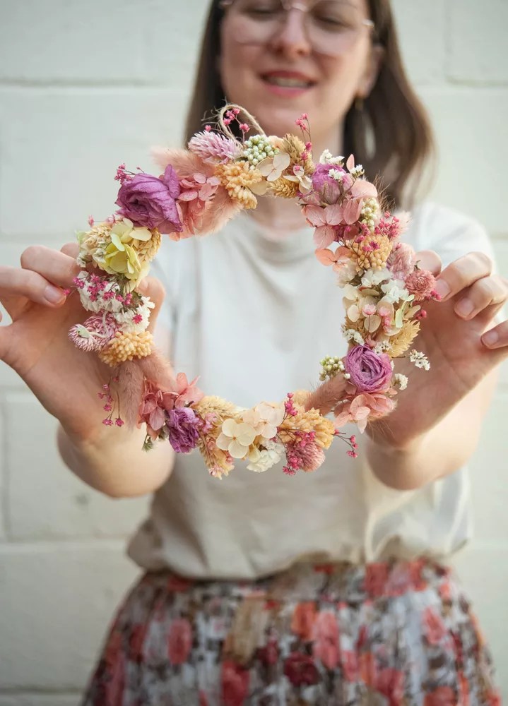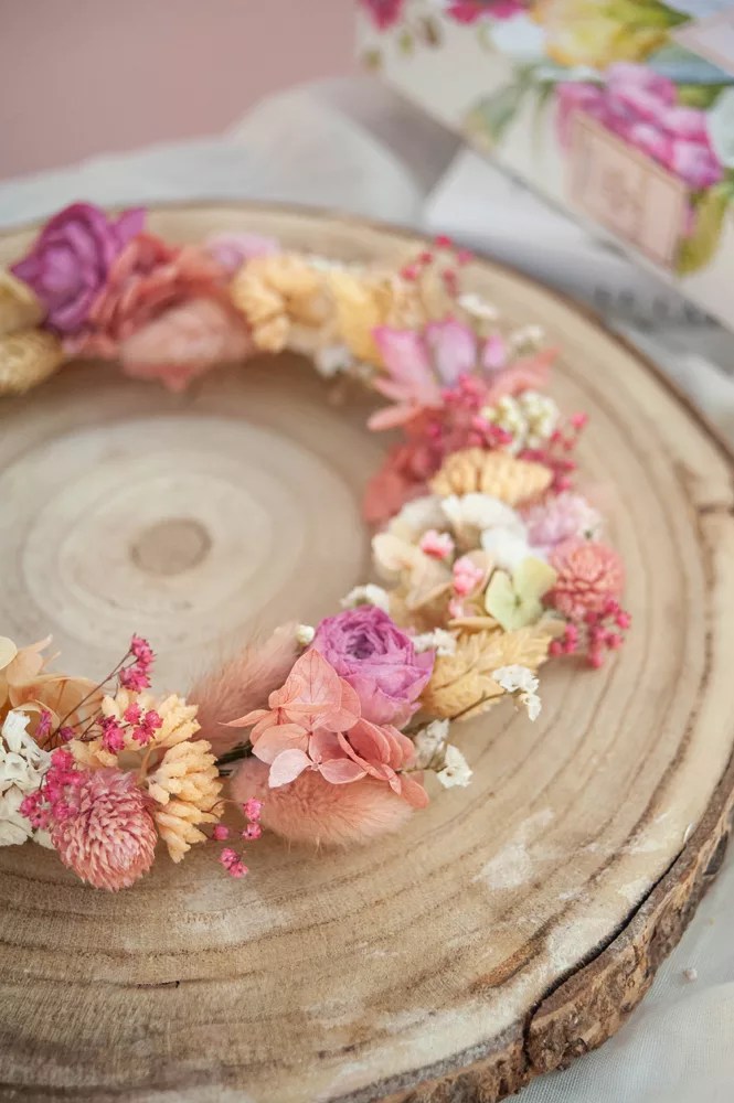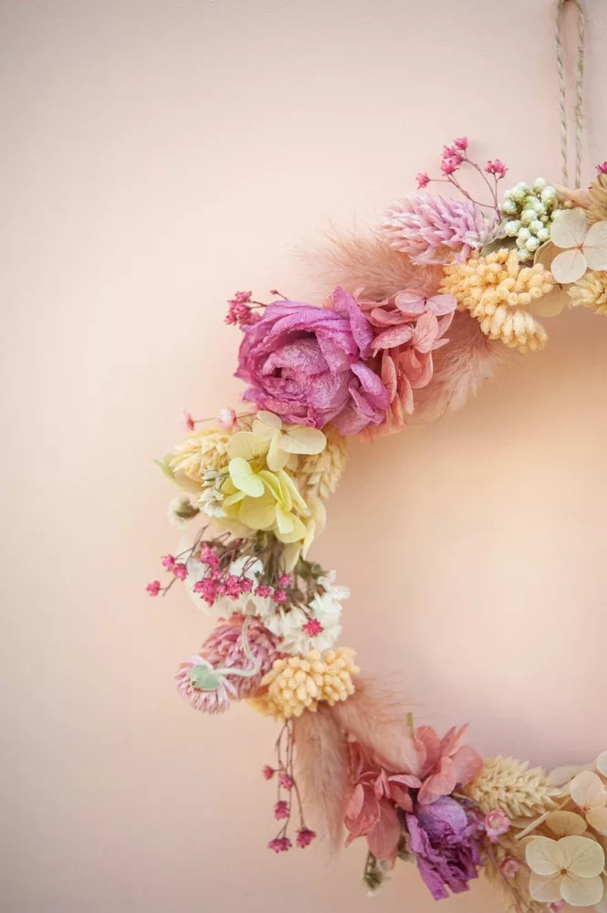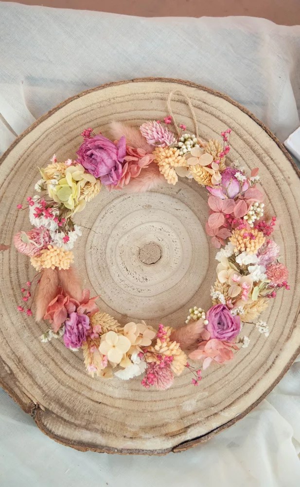 Les avantages des fleurs séchées : Fini les bouquets qui fanent en quelques jours ! Les couronnes en fleurs séchées durent plusieurs mois, voire plusieurs années. Une alternative durable à la fleur fraîche, qui vous permet de profiter longtemps de la beauté florale sans gaspillage.