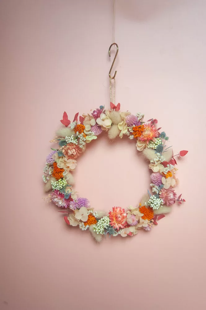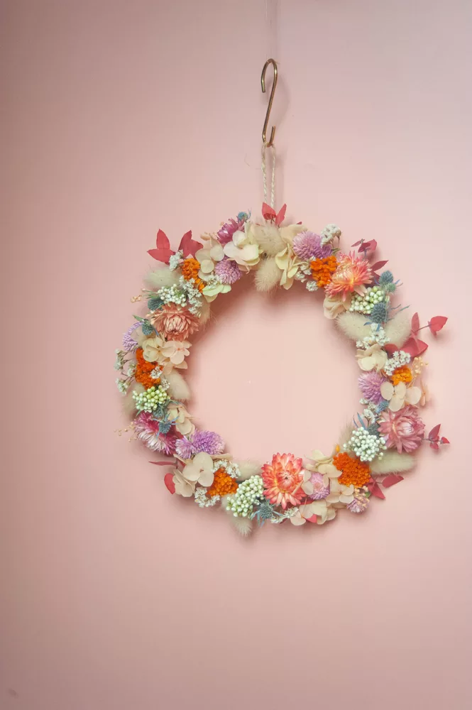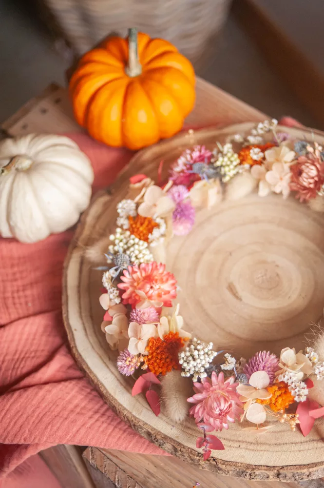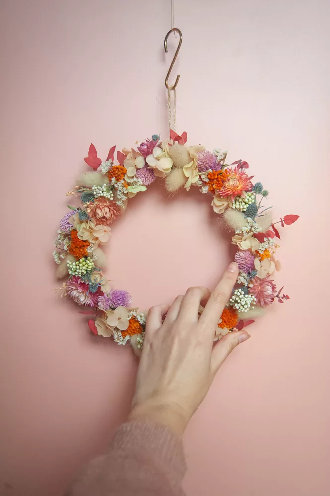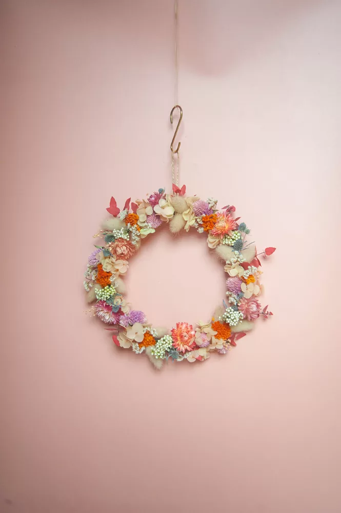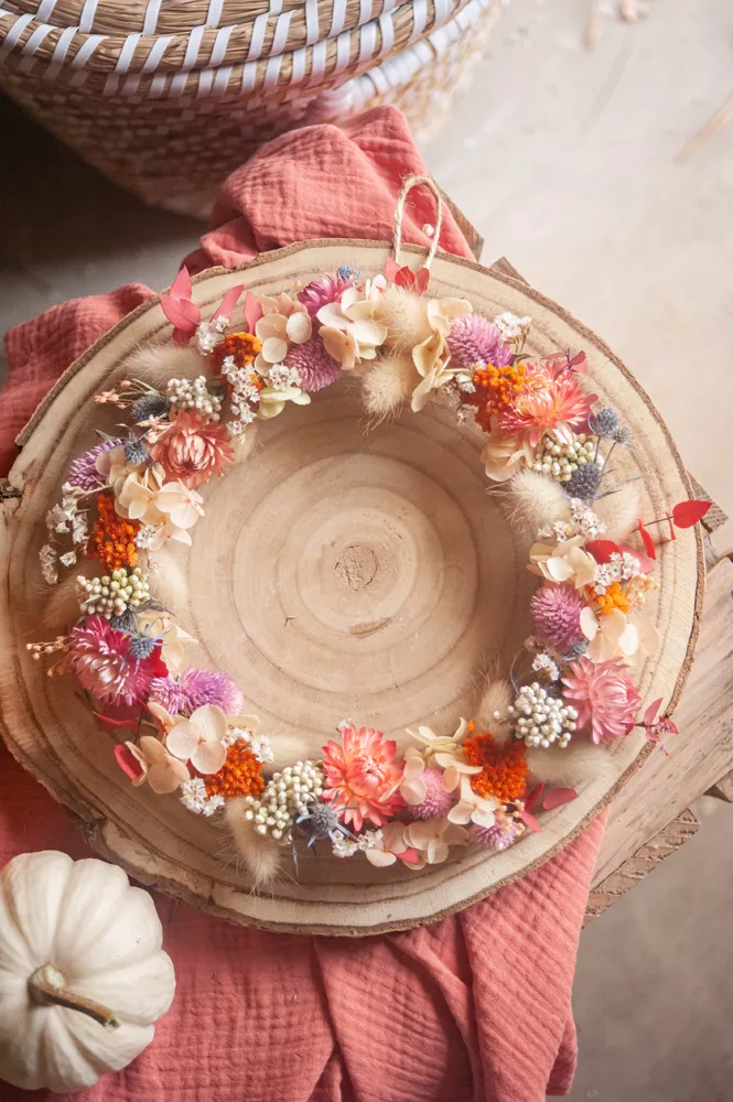 Les avantages des fleurs séchées : Fini les bouquets qui fanent en quelques jours ! Les couronnes en fleurs séchées durent plusieurs mois, voire plusieurs années. Une alternative durable à la fleur fraîche, qui vous permet de profiter longtemps de la beauté florale sans gaspillage.