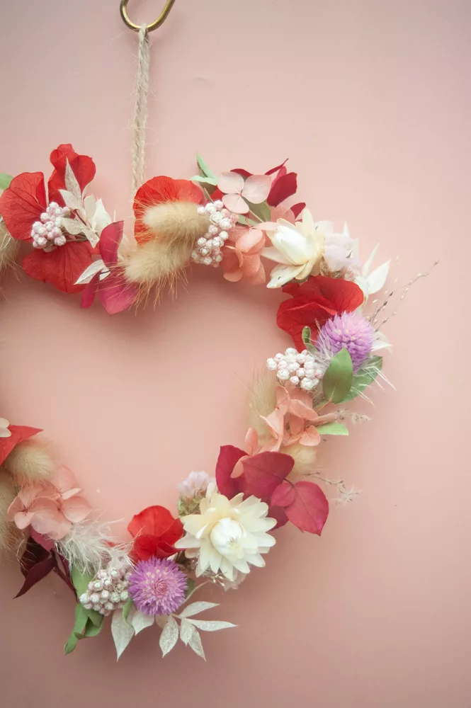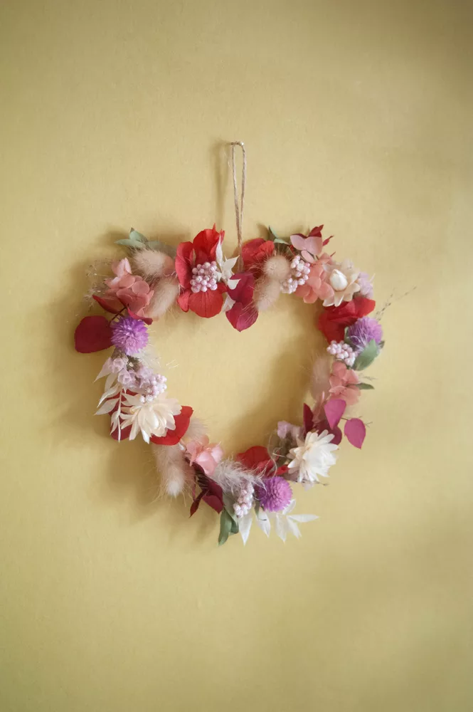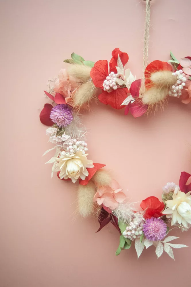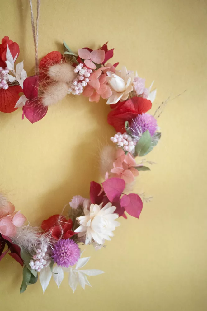 Les avantages des fleurs séchées : Fini les bouquets qui fanent en quelques jours ! Les couronnes en fleurs séchées durent plusieurs mois, voire plusieurs années. Une alternative durable à la fleur fraîche, qui vous permet de profiter longtemps de la beauté florale sans gaspillage.
