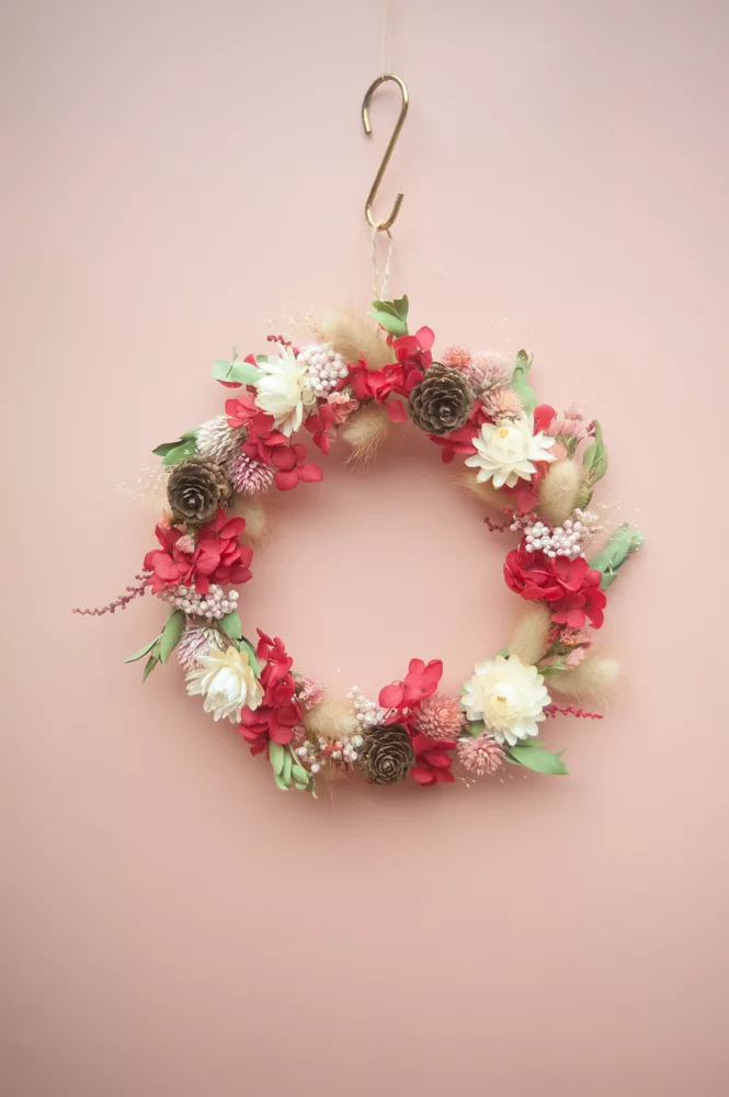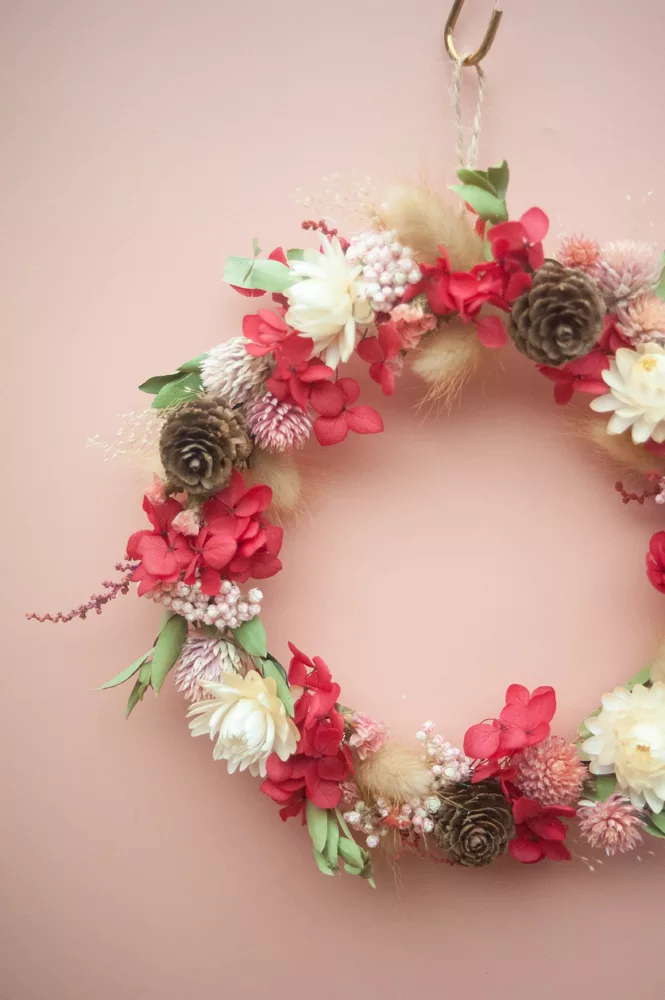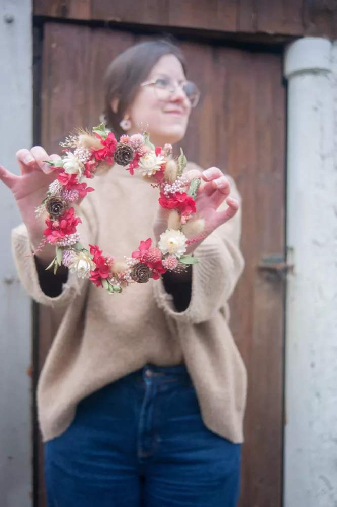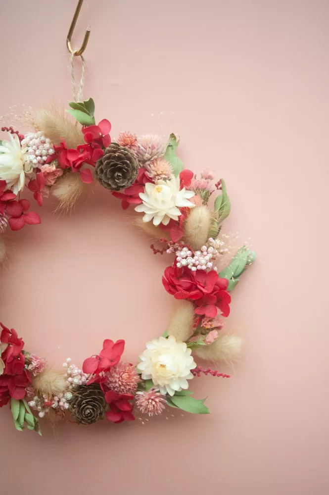 Les avantages des fleurs séchées : Fini les bouquets qui fanent en quelques jours ! Les couronnes en fleurs séchées durent plusieurs mois, voire plusieurs années. Une alternative durable à la fleur fraîche, qui vous permet de profiter longtemps de la beauté florale sans gaspillage.