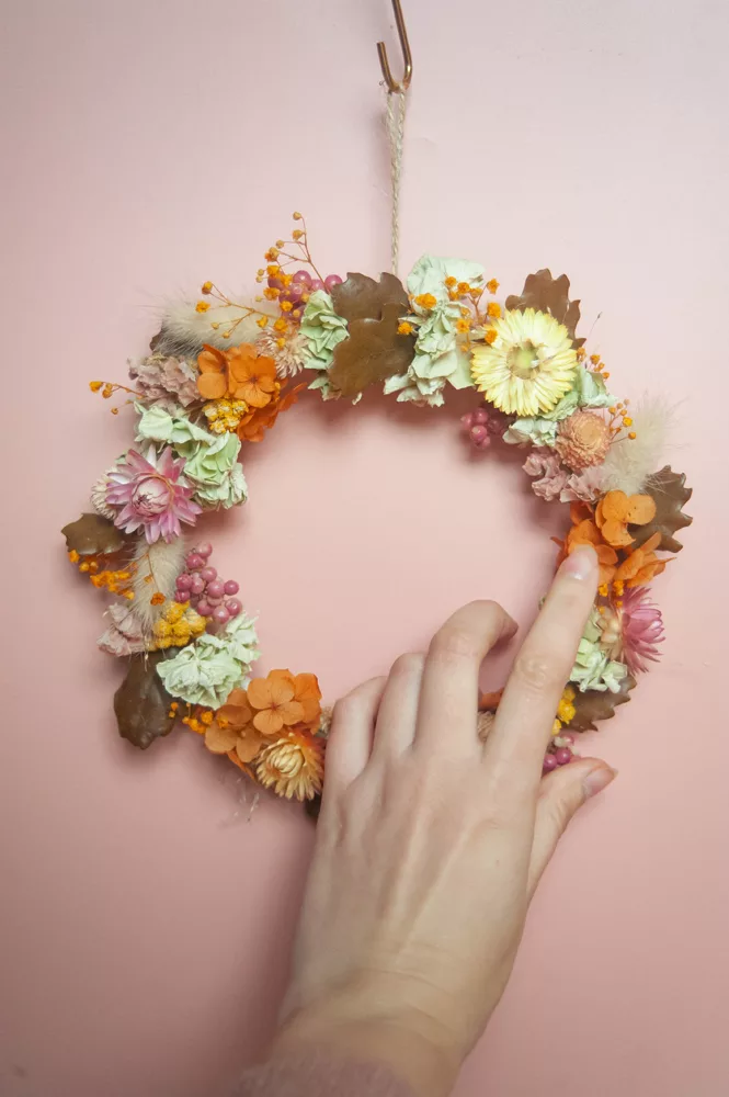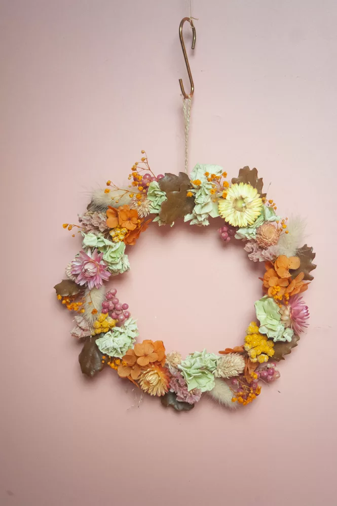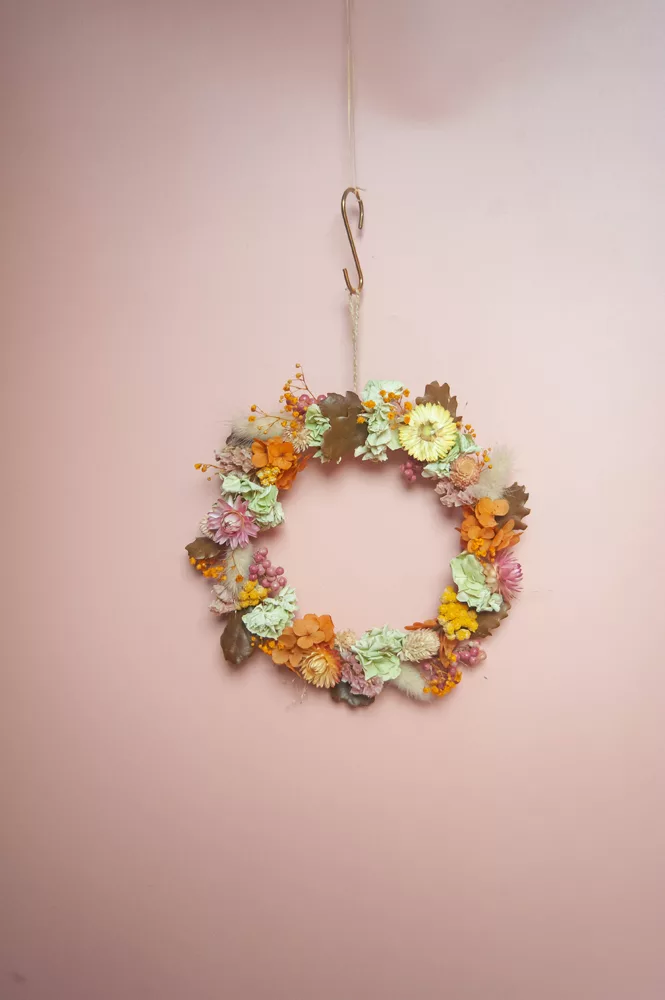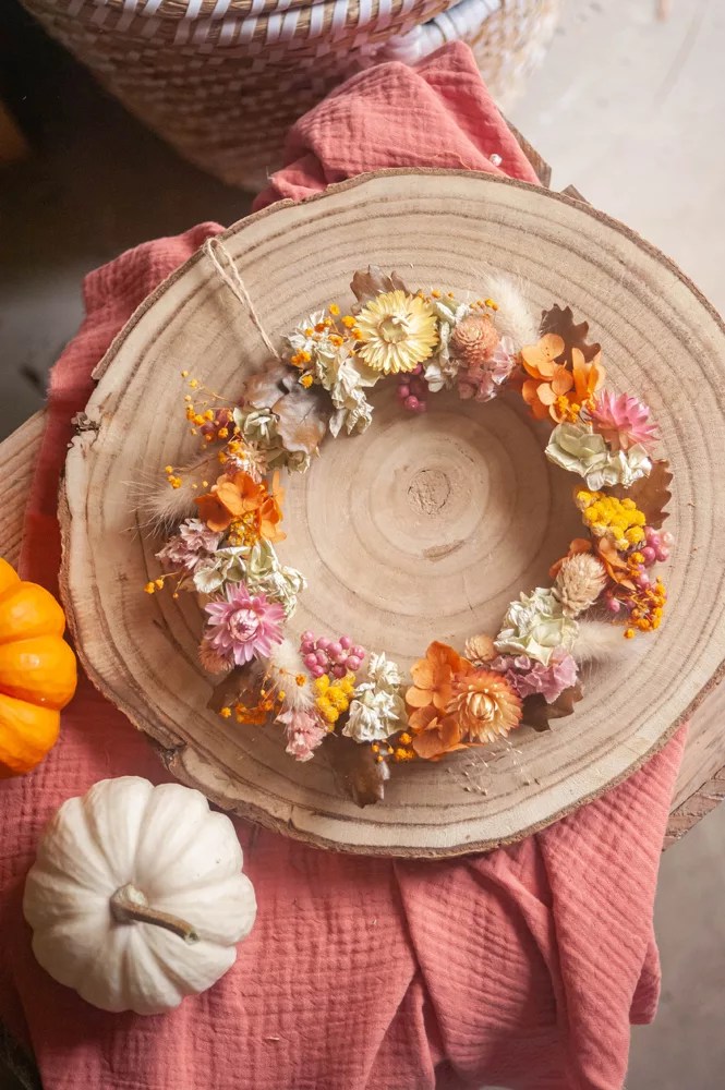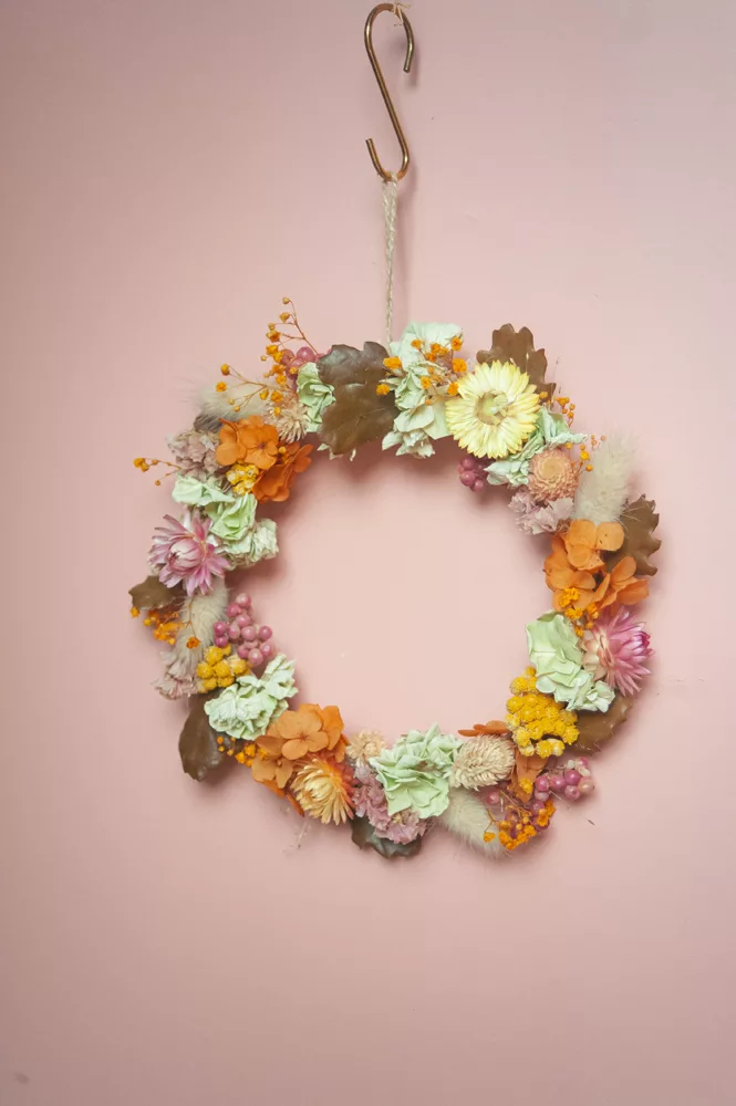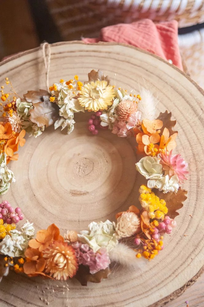 Les avantages des fleurs séchées : Fini les bouquets qui fanent en quelques jours ! Les couronnes en fleurs séchées durent plusieurs mois, voire plusieurs années. Une alternative durable à la fleur fraîche, qui vous permet de profiter longtemps de la beauté florale sans gaspillage.
