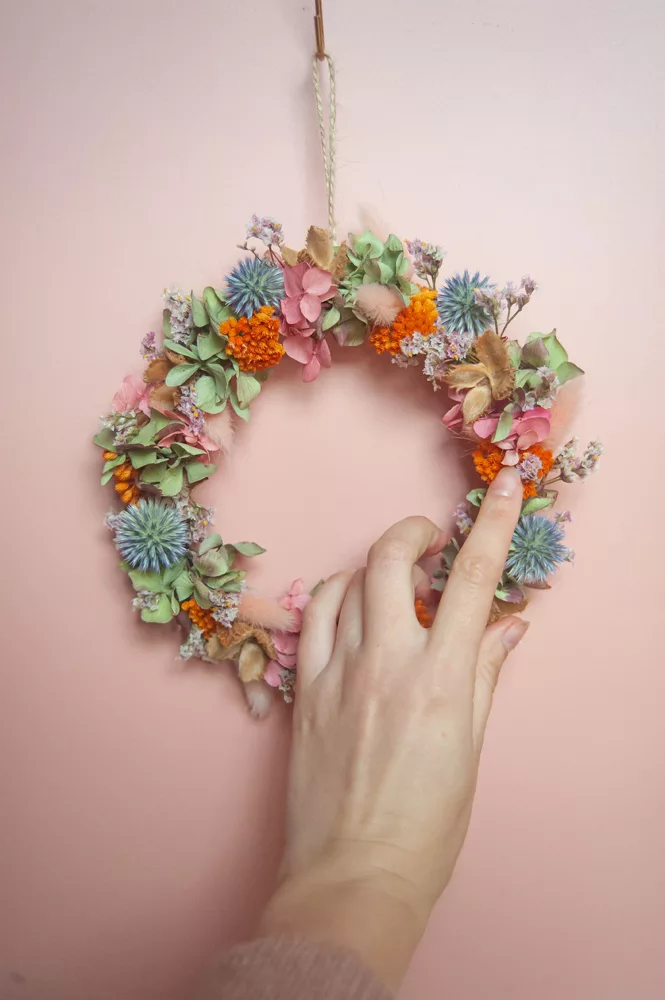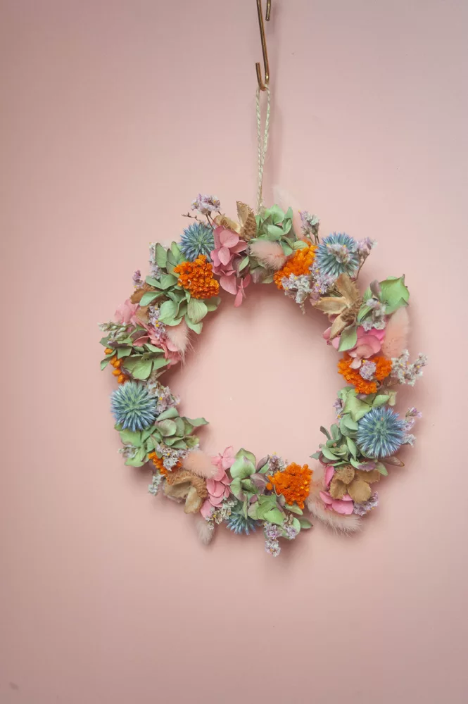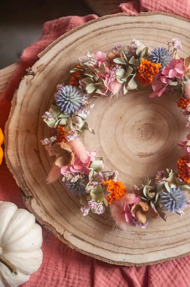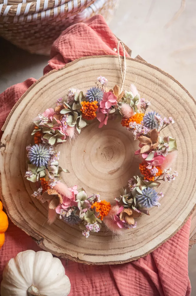 Les avantages des fleurs séchées : Fini les bouquets qui fanent en quelques jours ! Les couronnes en fleurs séchées durent plusieurs mois, voire plusieurs années. Une alternative durable à la fleur fraîche, qui vous permet de profiter longtemps de la beauté florale sans gaspillage.