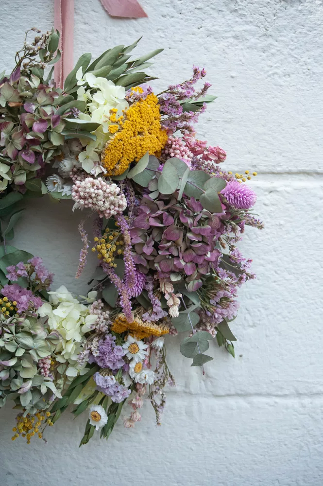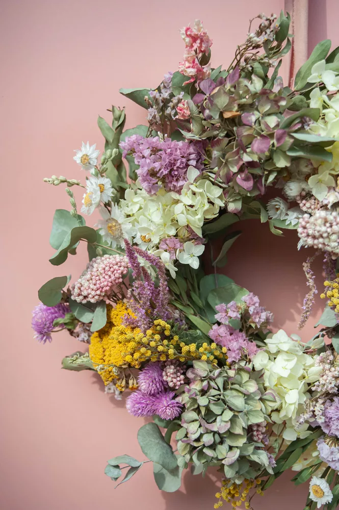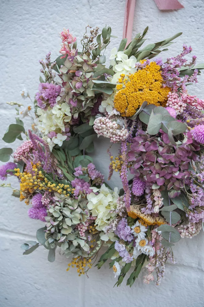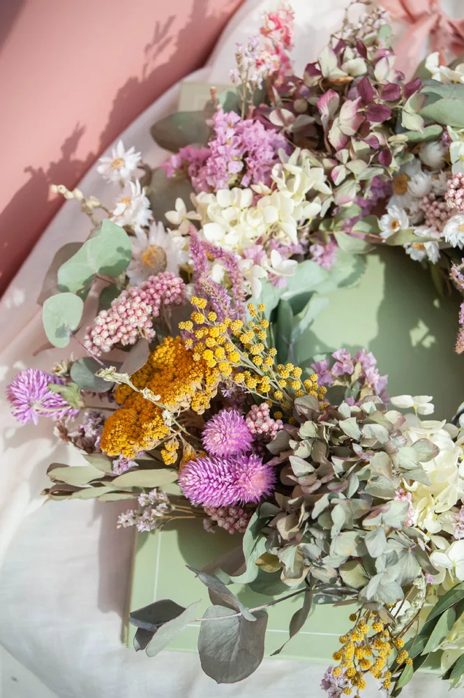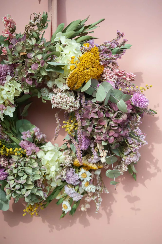 Les avantages des fleurs séchées : Fini les bouquets qui fanent en quelques jours ! Les couronnes en fleurs séchées durent plusieurs mois, voire plusieurs années. Une alternative durable à la fleur fraîche, qui vous permet de profiter longtemps de la beauté florale sans gaspillage.