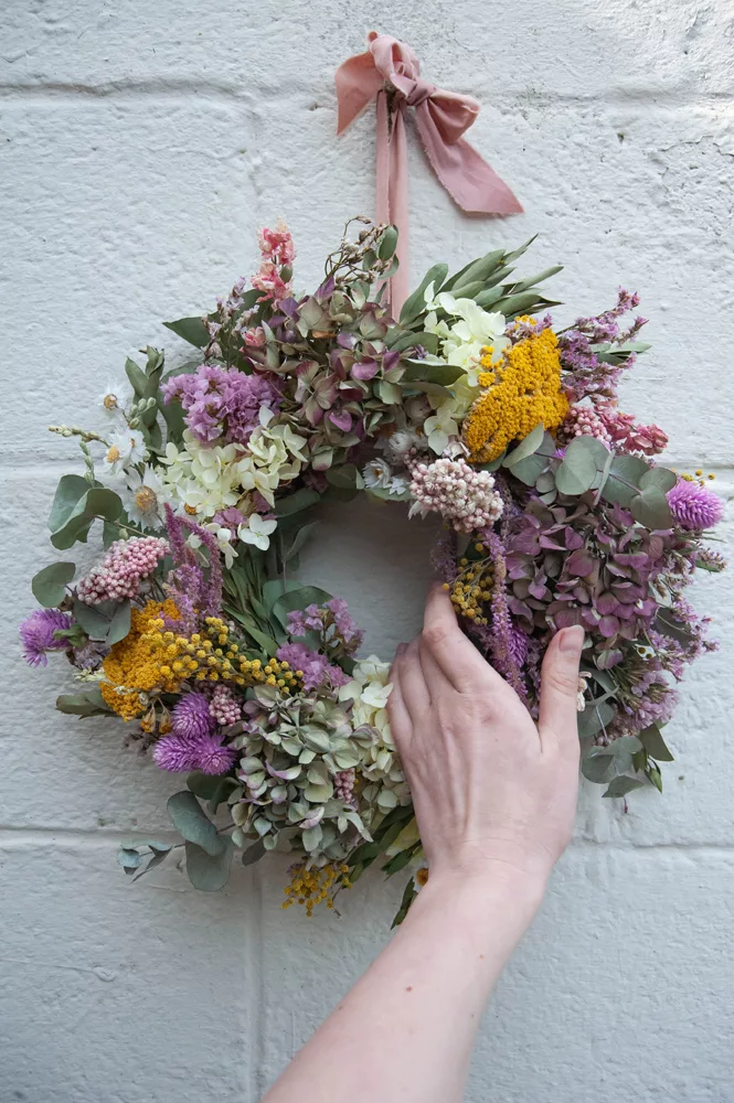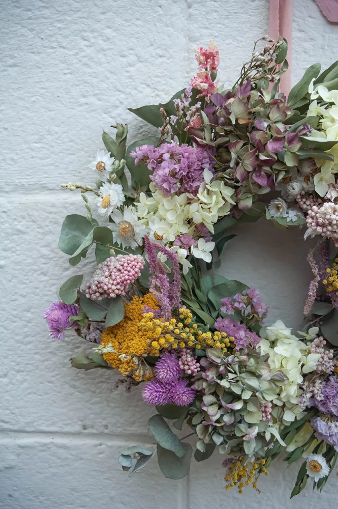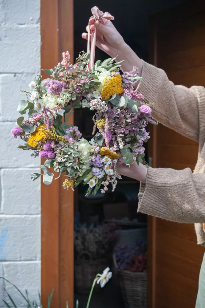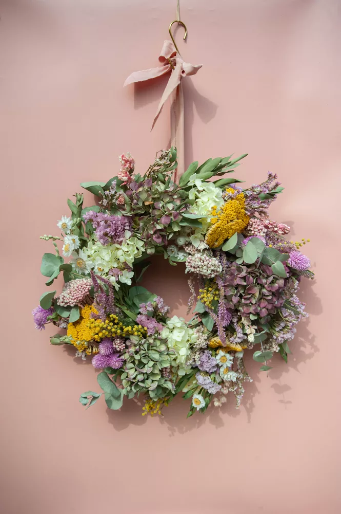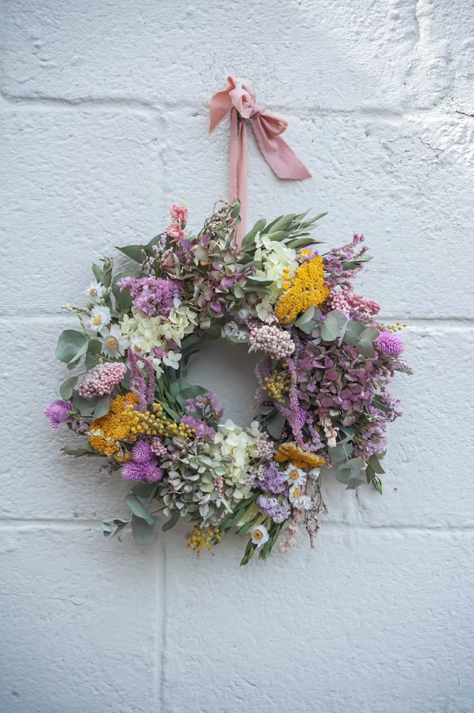 Les avantages des fleurs séchées : Fini les bouquets qui fanent en quelques jours ! Les couronnes en fleurs séchées durent plusieurs mois, voire plusieurs années. Une alternative durable à la fleur fraîche, qui vous permet de profiter longtemps de la beauté florale sans gaspillage.