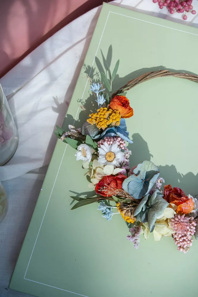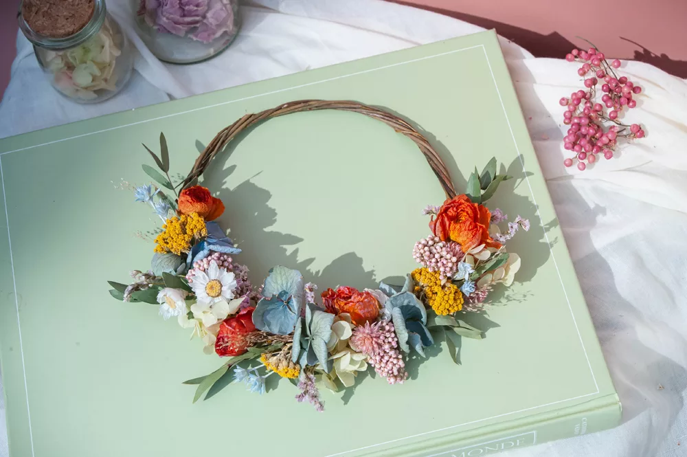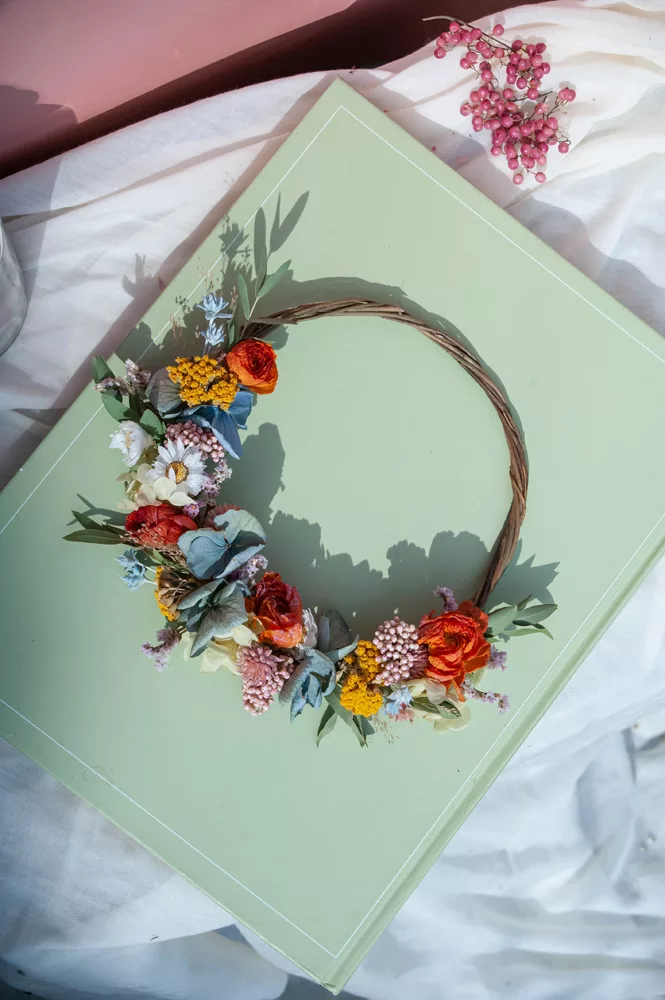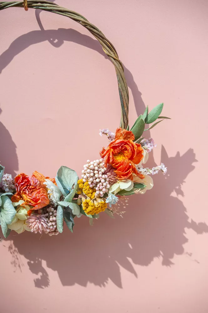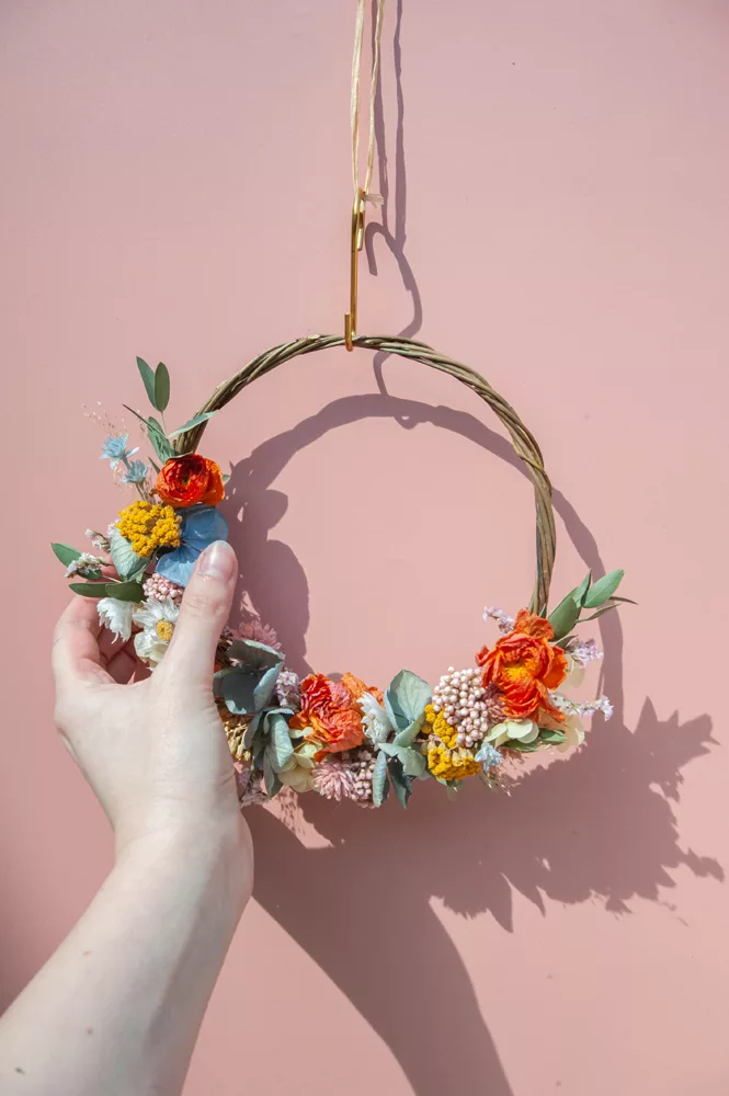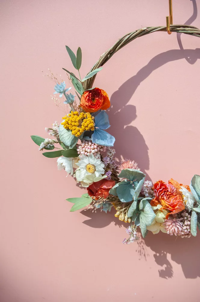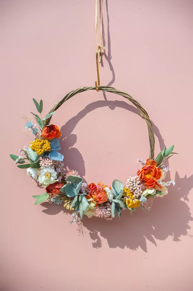 Les avantages des fleurs séchées : Fini les bouquets qui fanent en quelques jours ! Les couronnes en fleurs séchées durent plusieurs mois, voire plusieurs années. Une alternative durable à la fleur fraîche, qui vous permet de profiter longtemps de la beauté florale sans gaspillage.
