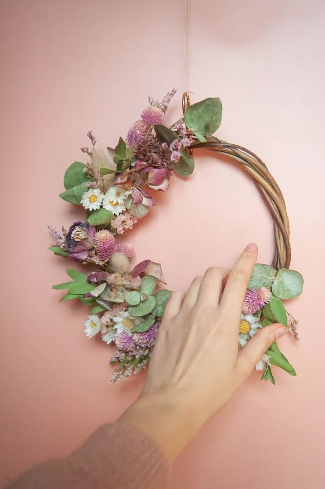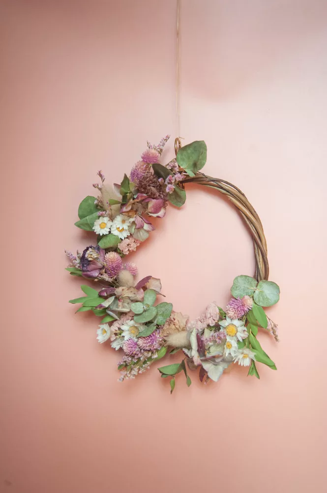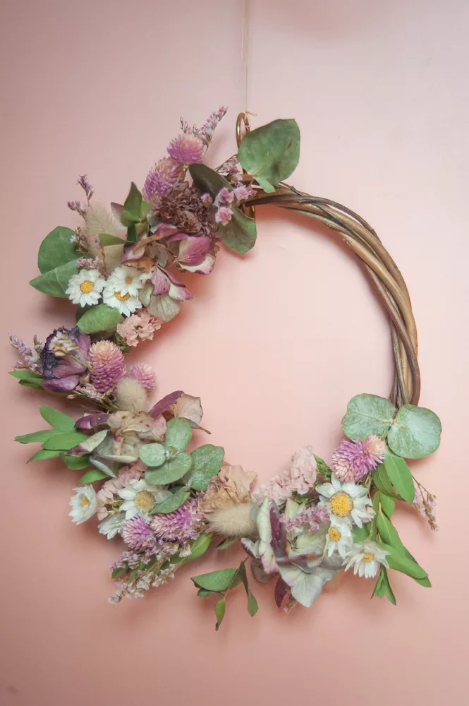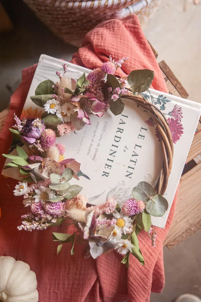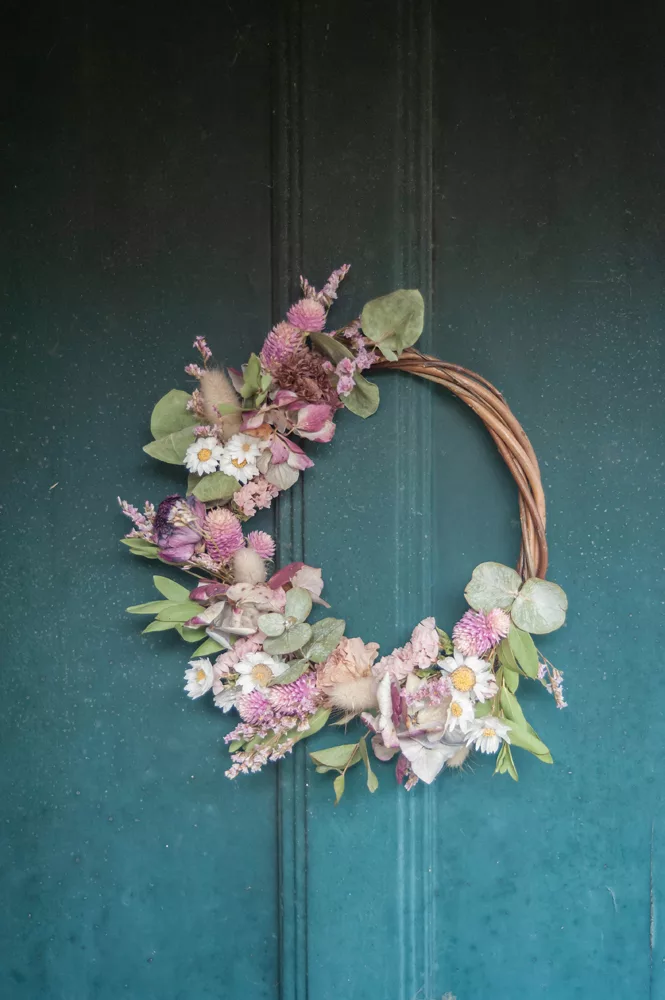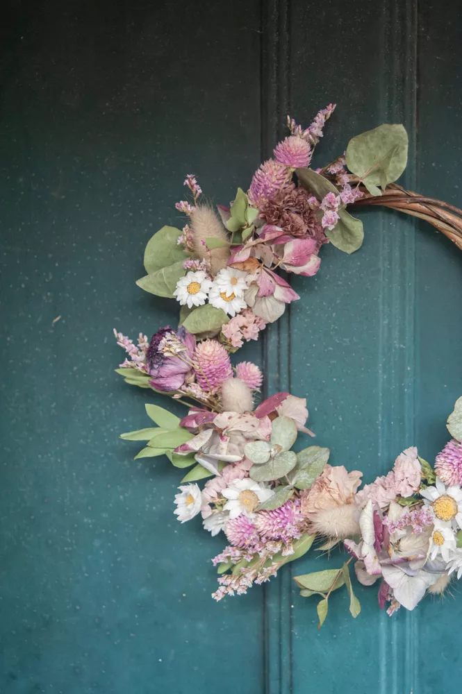 Les avantages des fleurs séchées : Fini les bouquets qui fanent en quelques jours ! Les couronnes en fleurs séchées durent plusieurs mois, voire plusieurs années. Une alternative durable à la fleur fraîche, qui vous permet de profiter longtemps de la beauté florale sans gaspillage.