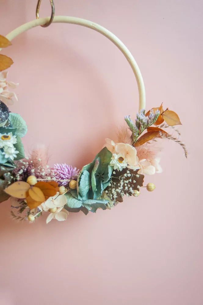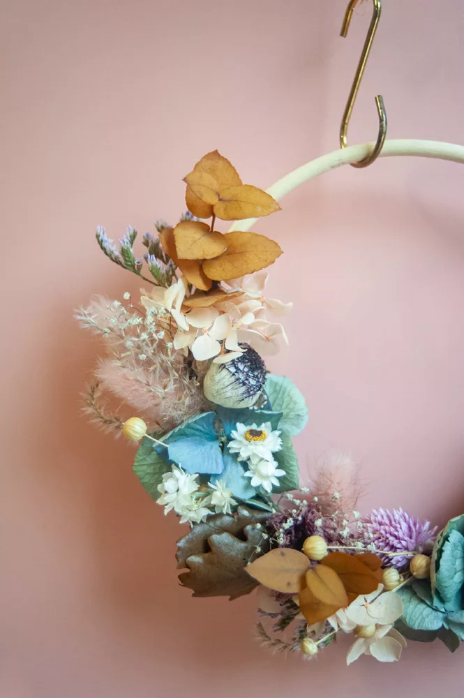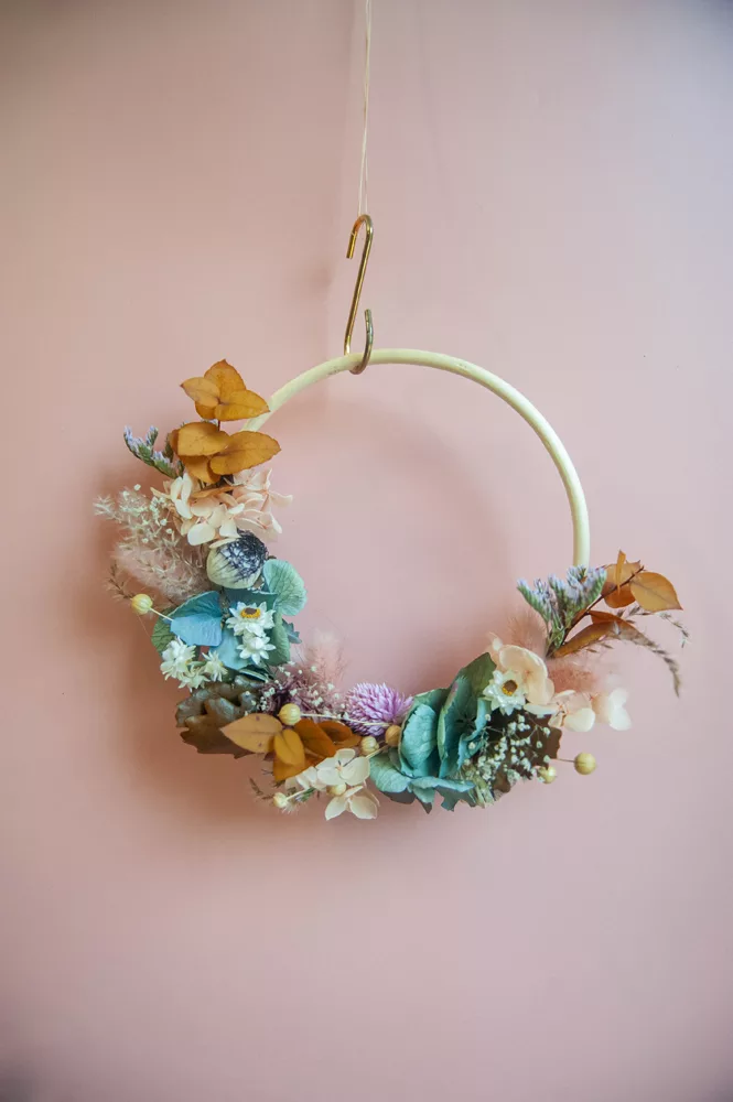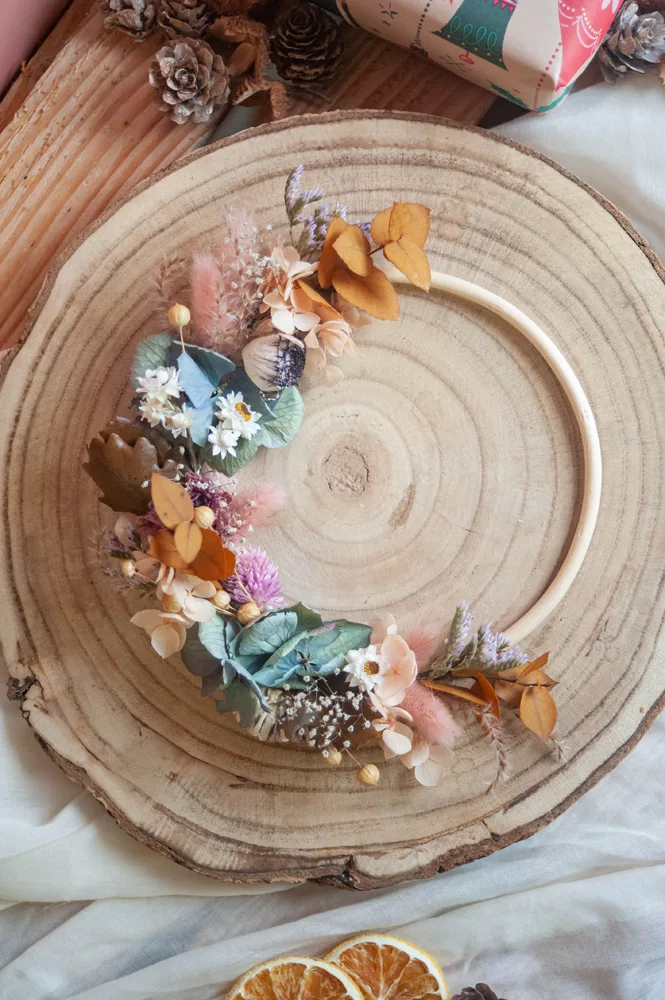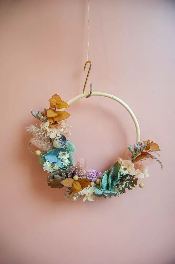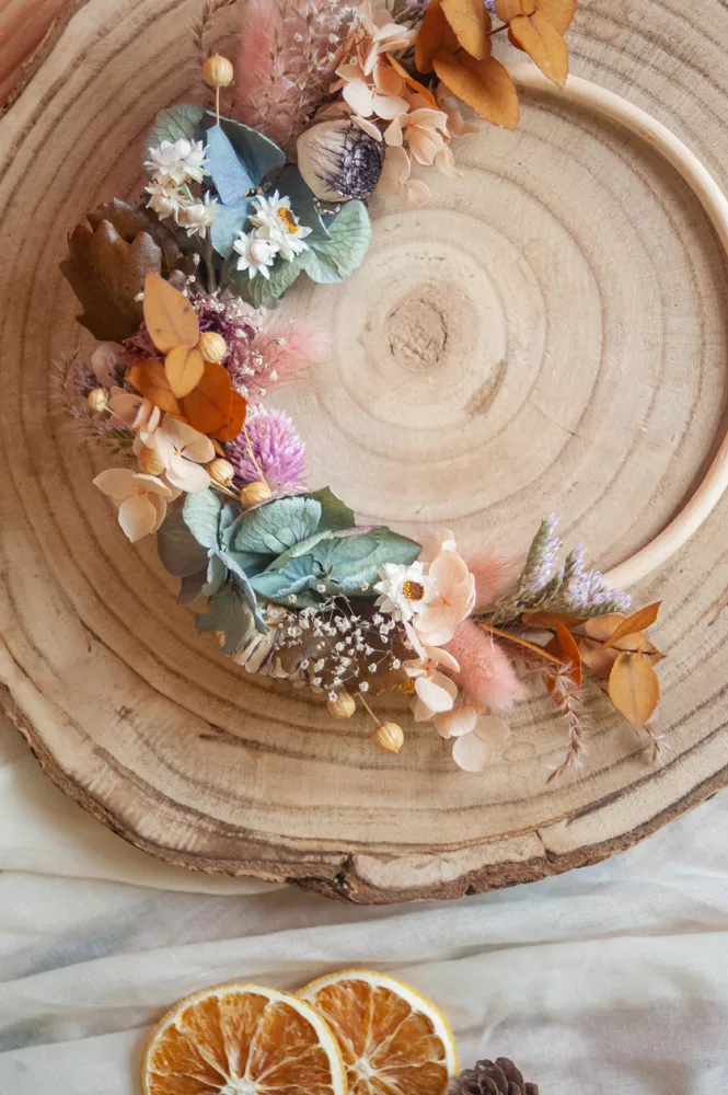 Les avantages des fleurs séchées : Fini les bouquets qui fanent en quelques jours ! Les couronnes en fleurs séchées durent plusieurs mois, voire plusieurs années. Une alternative durable à la fleur fraîche, qui vous permet de profiter longtemps de la beauté florale sans gaspillage.