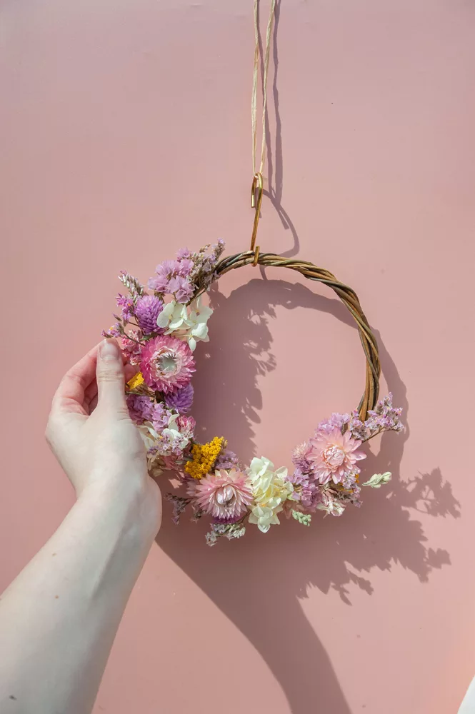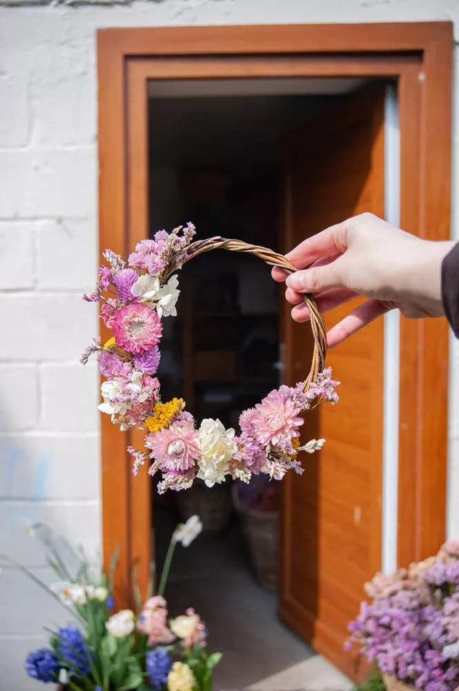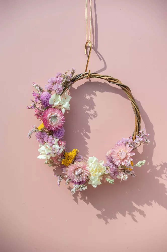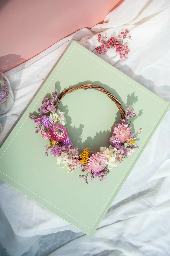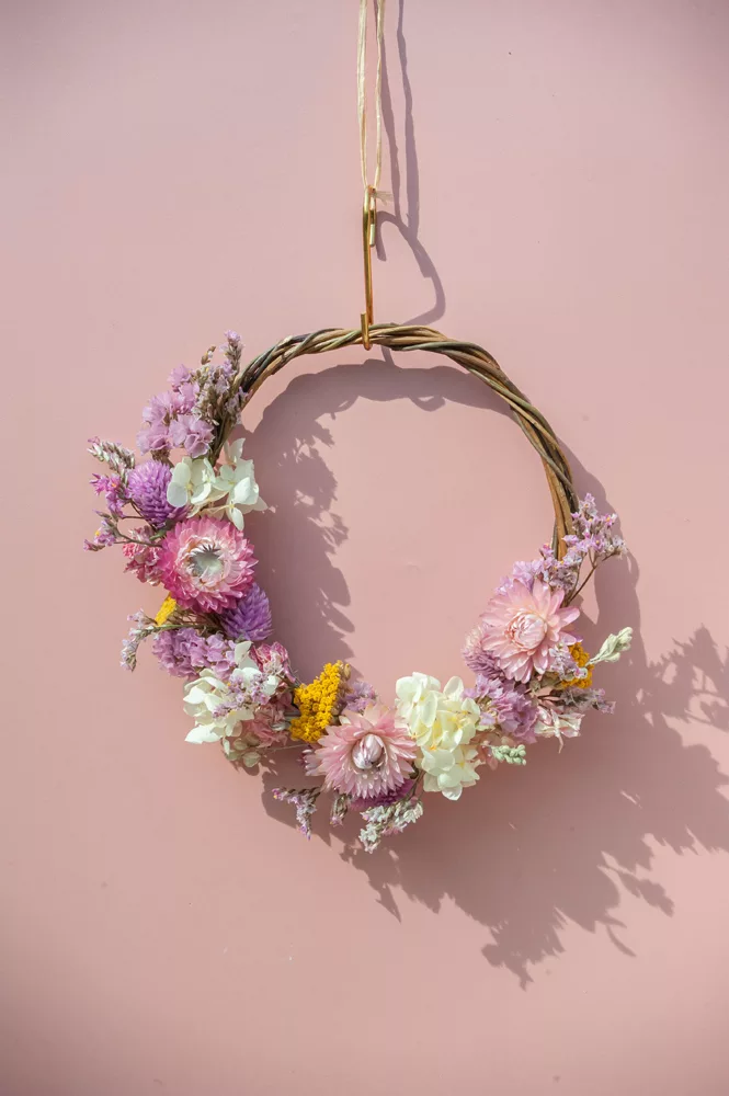 Les avantages des fleurs séchées : Fini les bouquets qui fanent en quelques jours ! Les couronnes en fleurs séchées durent plusieurs mois, voire plusieurs années. Une alternative durable à la fleur fraîche, qui vous permet de profiter longtemps de la beauté florale sans gaspillage.