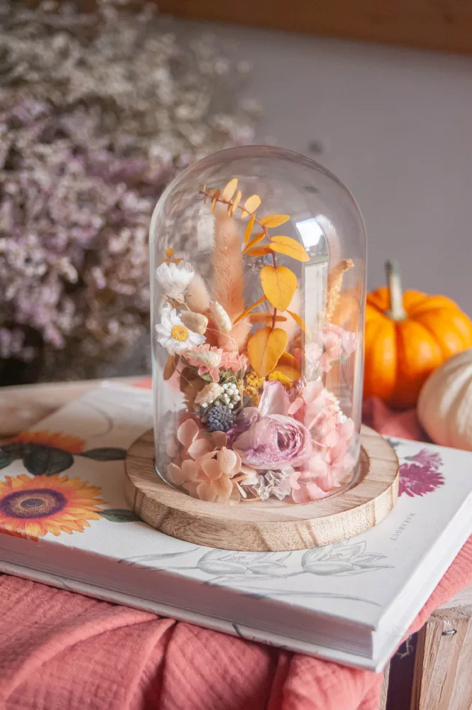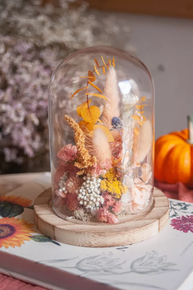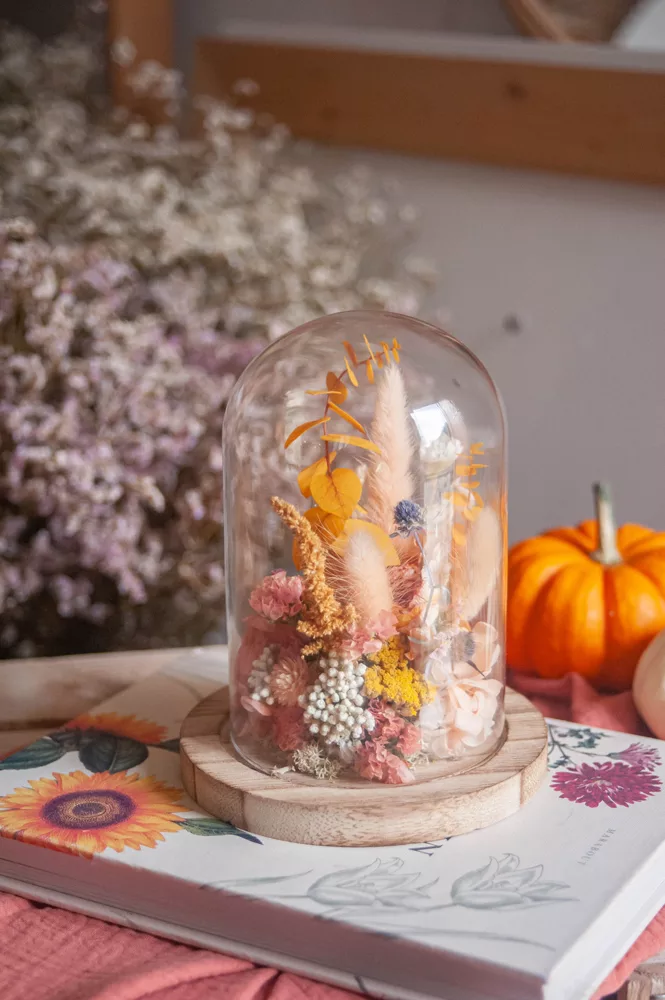 Cette cloche fleurie fera une décoration parfaite pour votre intérieur. Posée sur un meuble ou une étagère, c’est un petit brin de poésie à contempler telle une petite forêt enchantée.