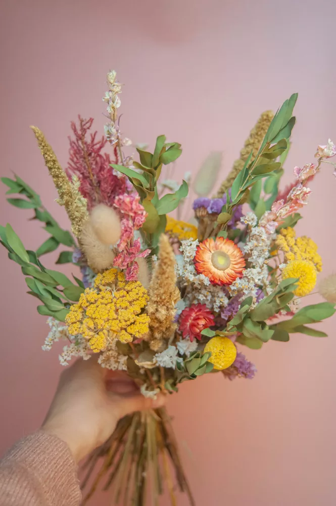 Les avantages des fleurs séchées :Un bouquet qui dure plusieurs mois, voire plusieurs années ! Fini les bouquets qui fanent au bout d’une semaine ! Vous investissez dans une décoration durable et responsable. En effet, jusqu’à 80% des fleurs proviennent de producteurs français, dans le respect du mouvement Slow Flower.