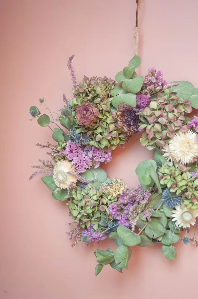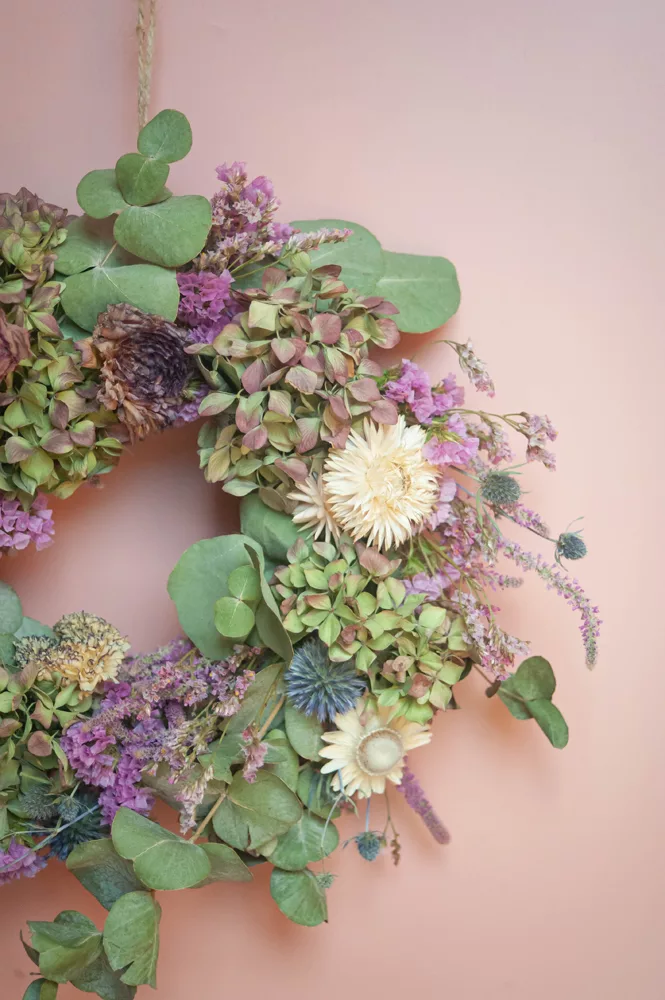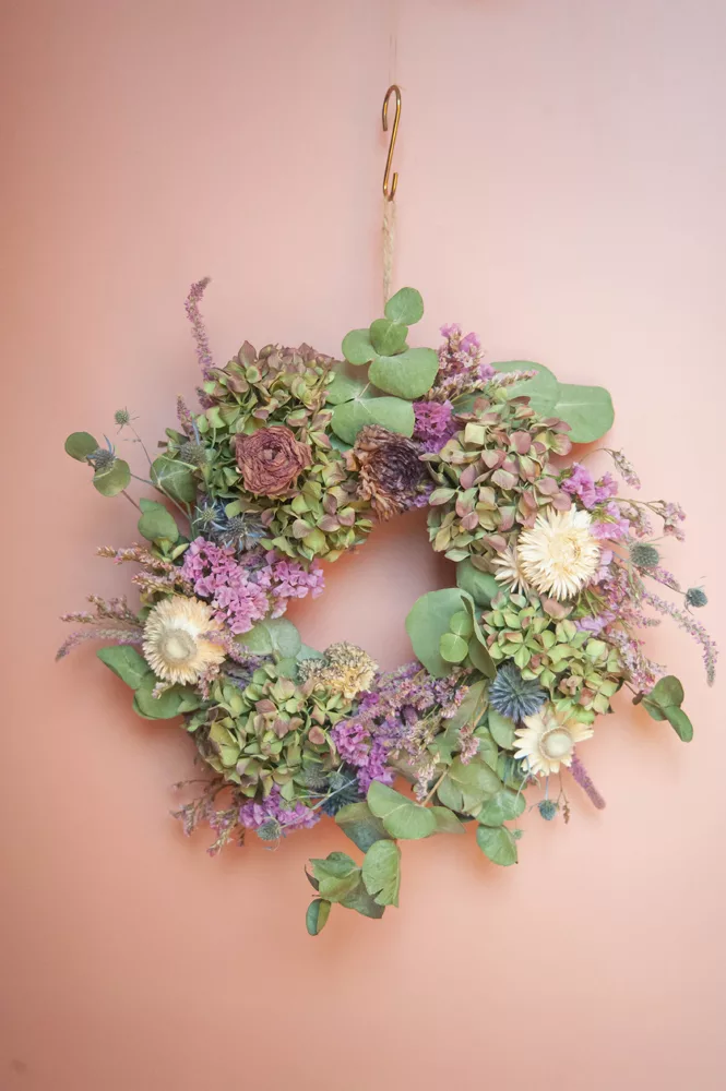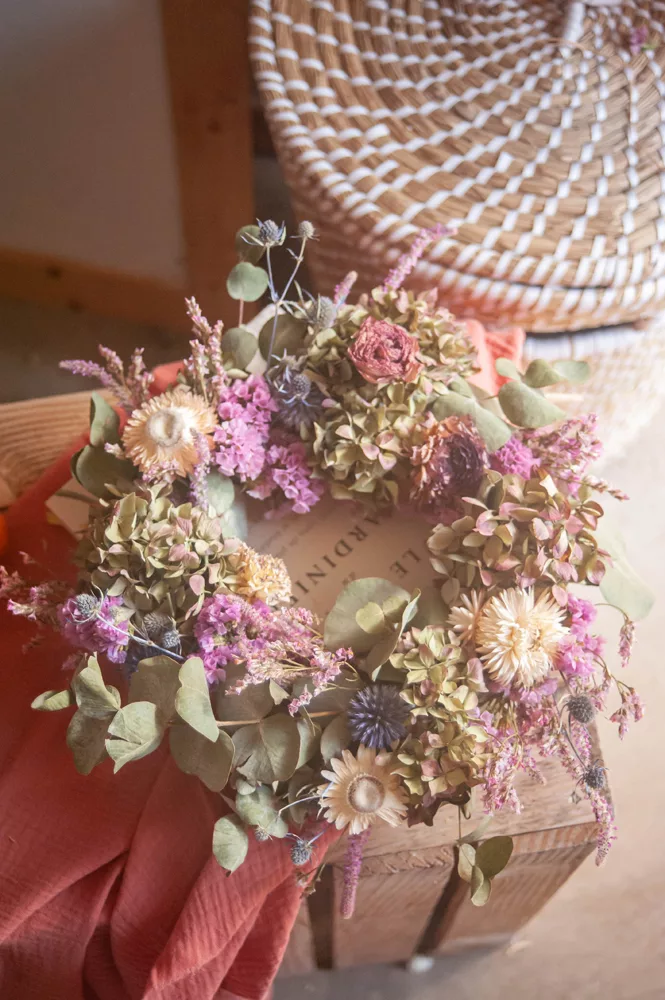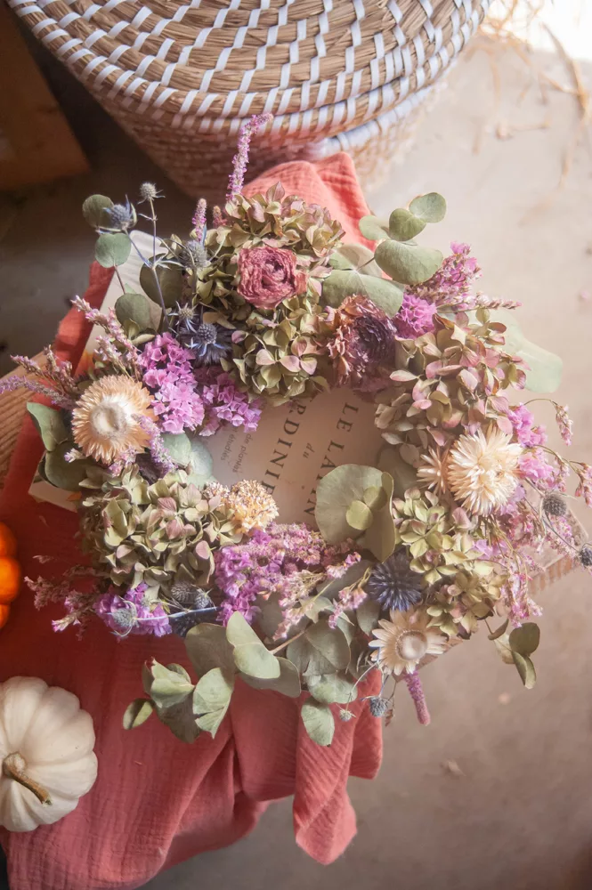 Durable : En choisissant cette couronne, vous optez pour une décoration naturelle et durable dans une démarche respectueuse de l’environnement et en accord avec le mouvement Slow Flower.