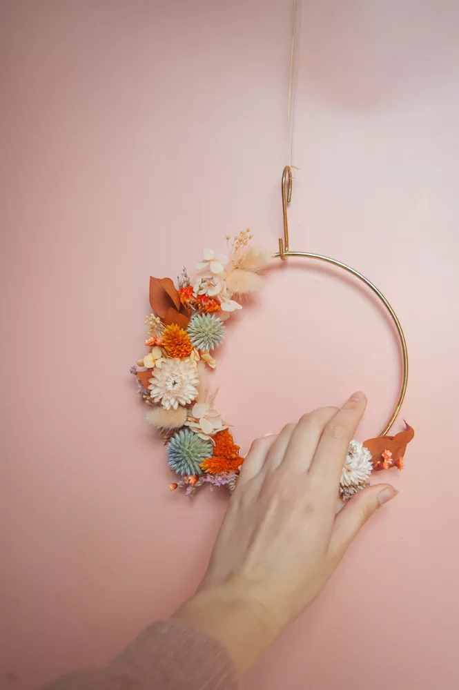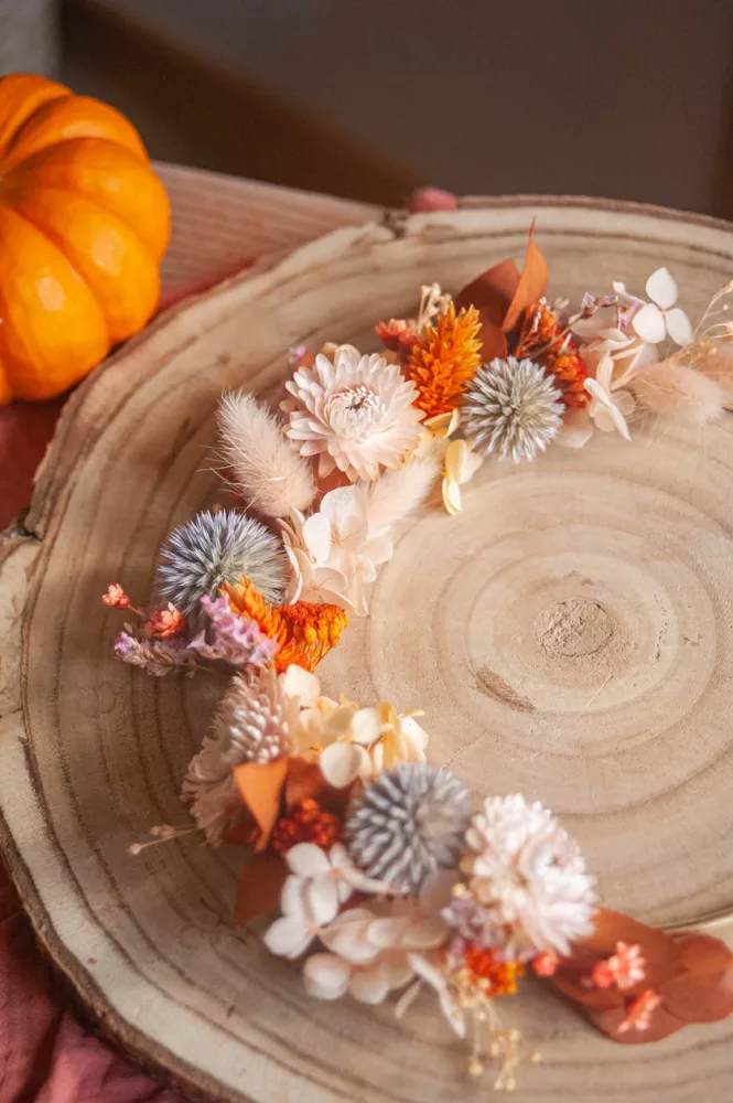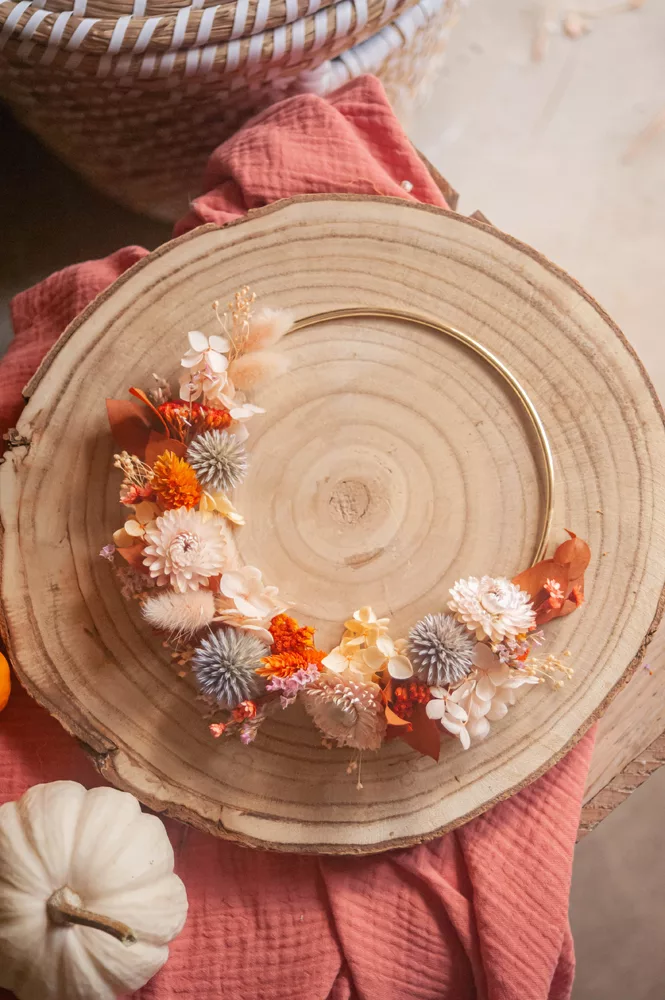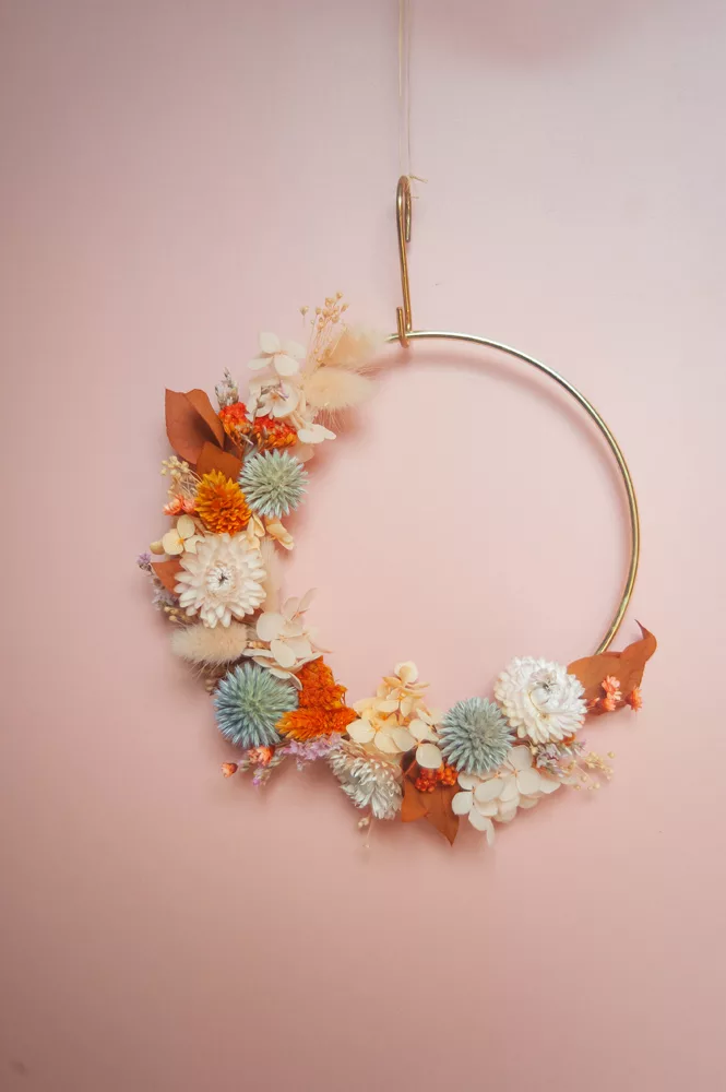 Les avantages des fleurs séchées : Fini les bouquets qui fanent en quelques jours ! Les couronnes en fleurs séchées durent plusieurs mois, voire plusieurs années. Une alternative durable à la fleur fraîche, qui vous permet de profiter longtemps de la beauté florale sans gaspillage.