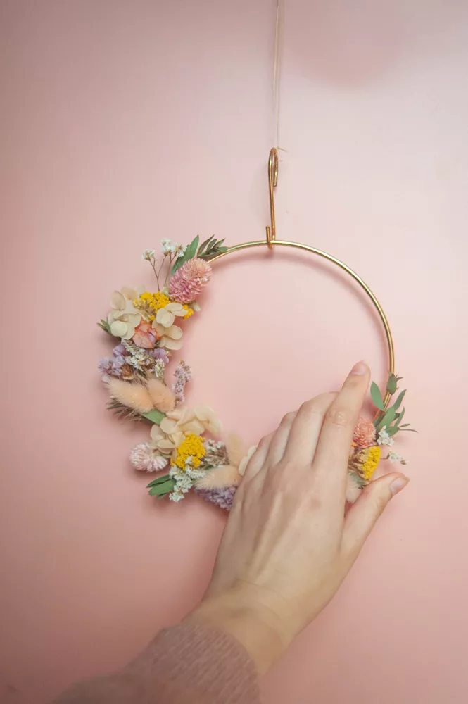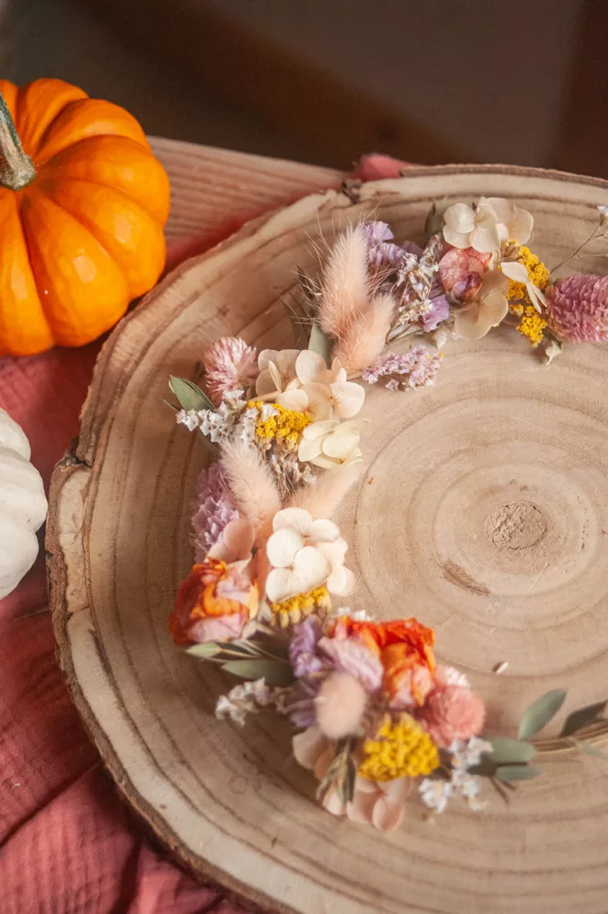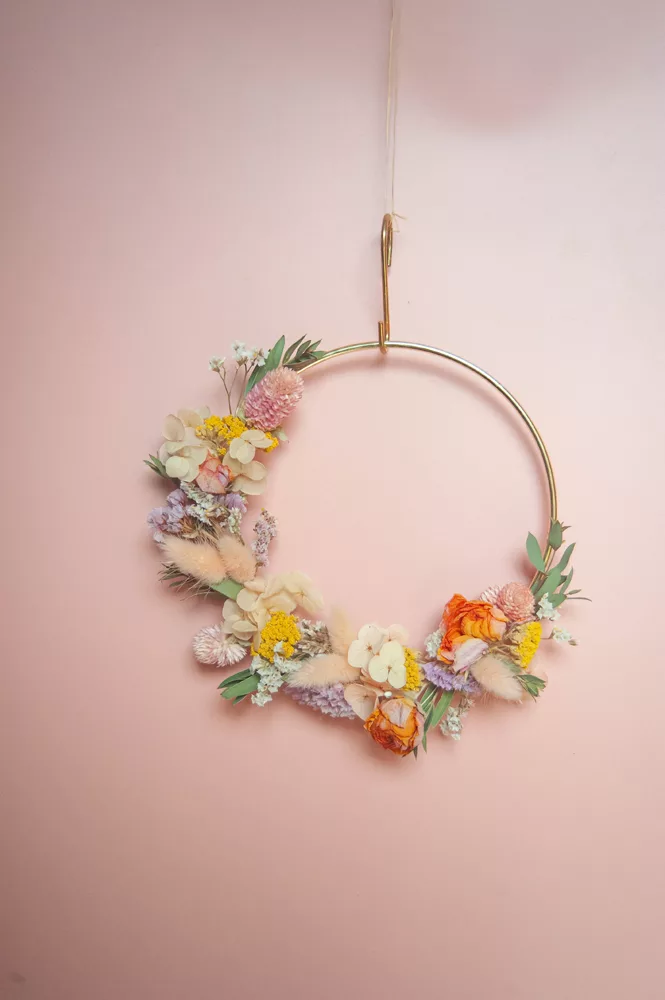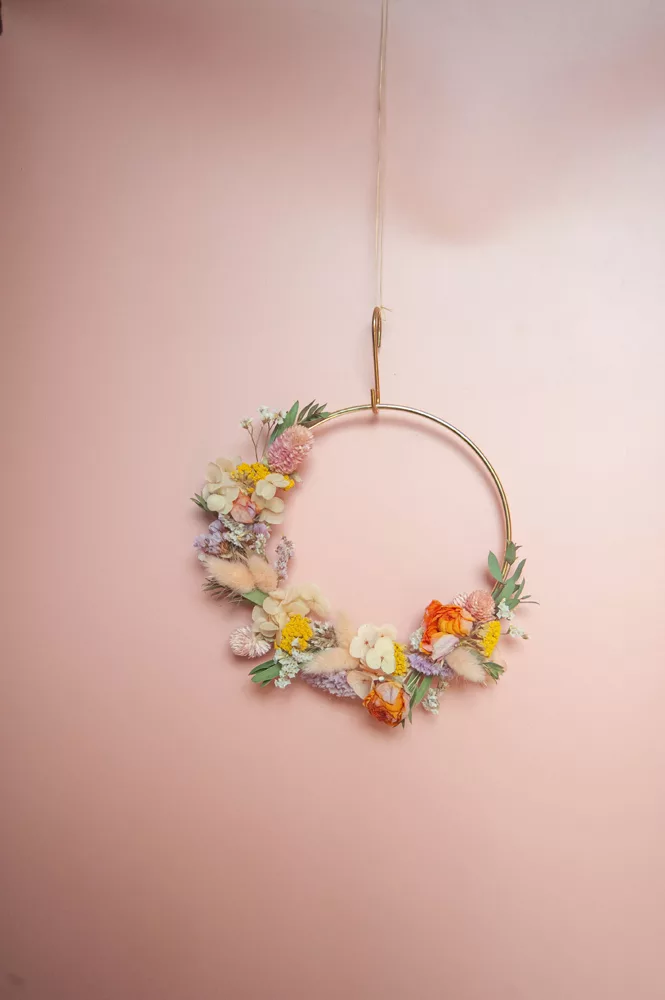 Les avantages des fleurs séchées : Fini les bouquets qui fanent en quelques jours ! Les couronnes en fleurs séchées durent plusieurs mois, voire plusieurs années. Une alternative durable à la fleur fraîche, qui vous permet de profiter longtemps de la beauté florale sans gaspillage.