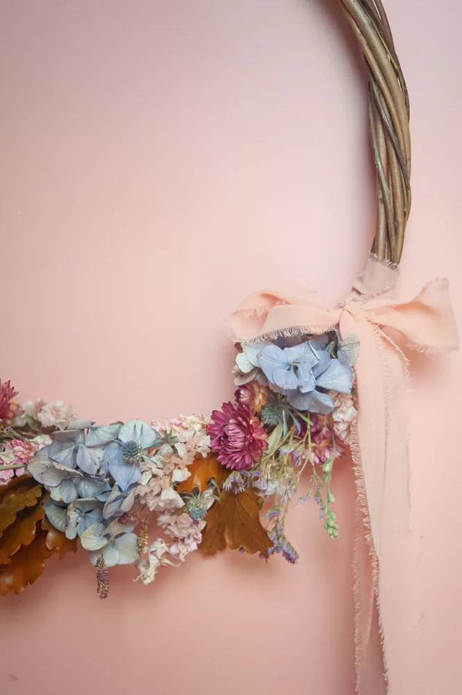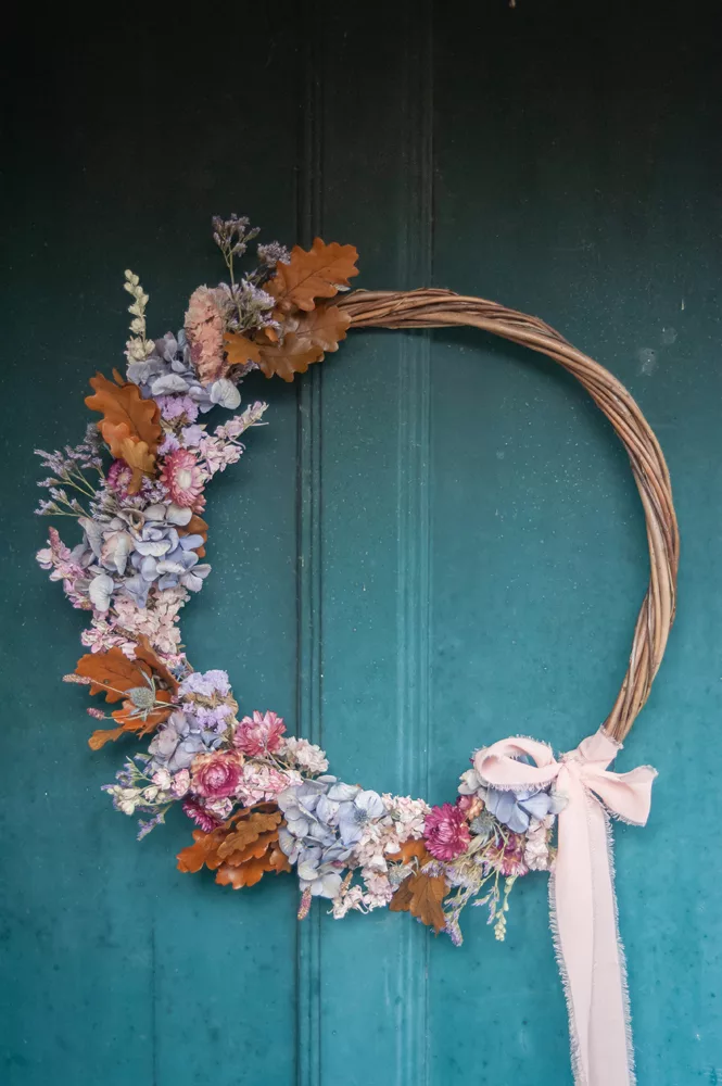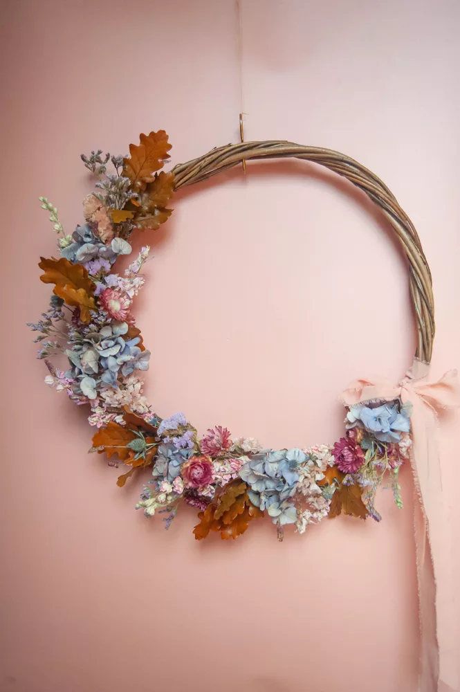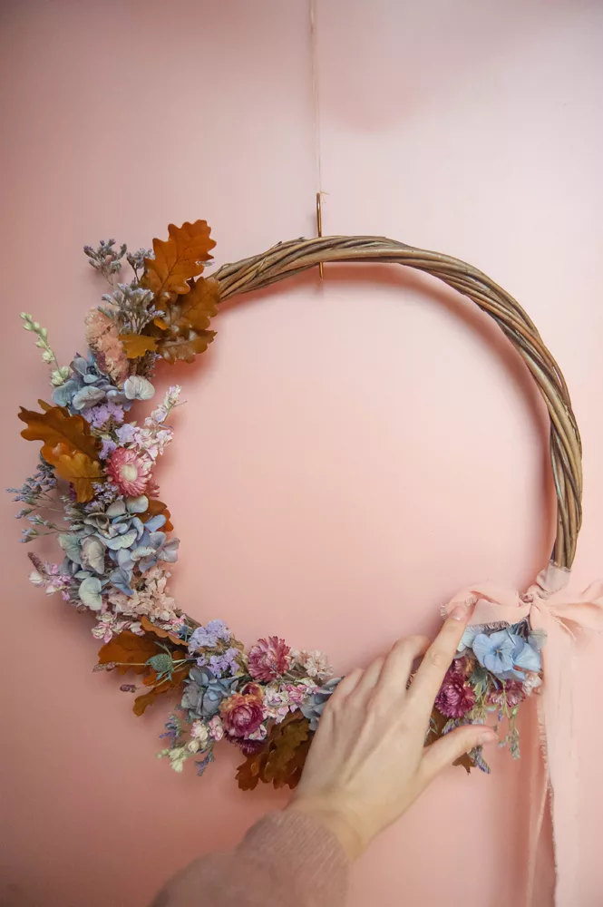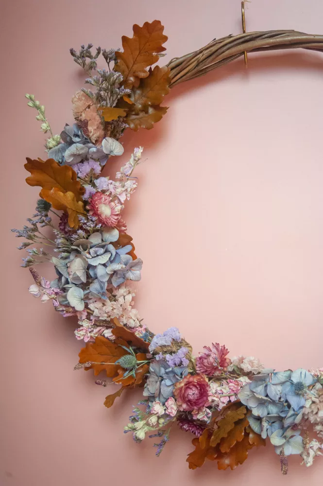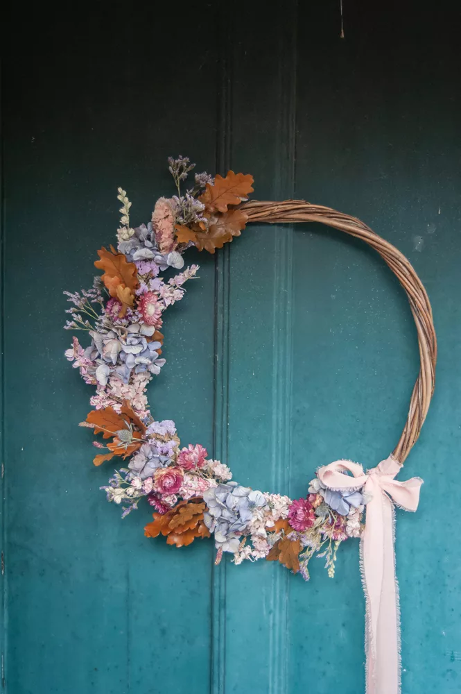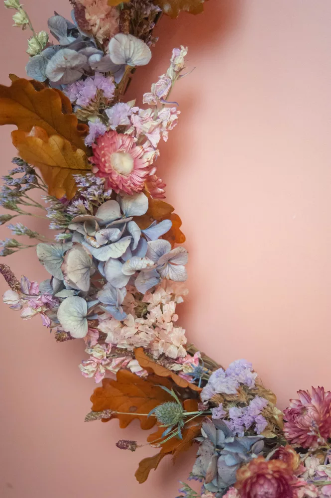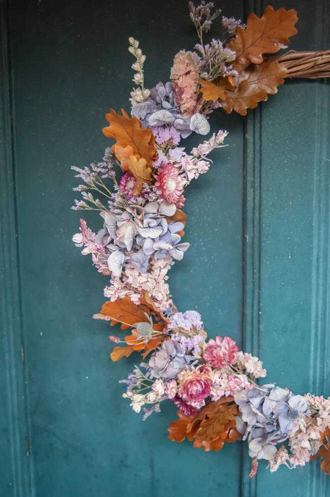 Les avantages des fleurs séchées : Fini les bouquets qui fanent en quelques jours ! Les couronnes en fleurs séchées durent plusieurs mois, voire plusieurs années. Une alternative durable à la fleur fraîche, qui vous permet de profiter longtemps de la beauté florale sans gaspillage.