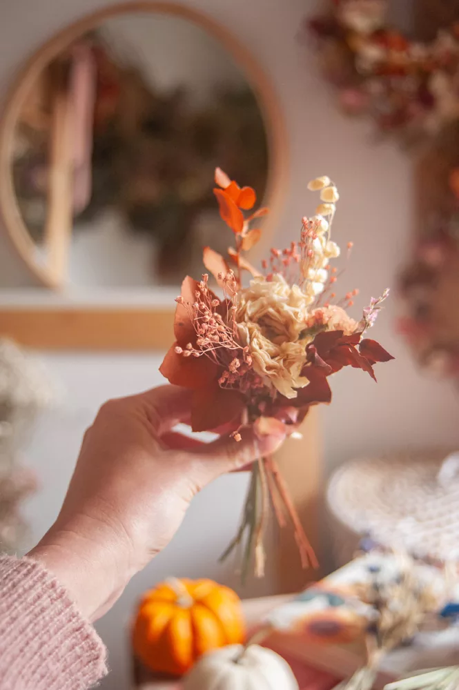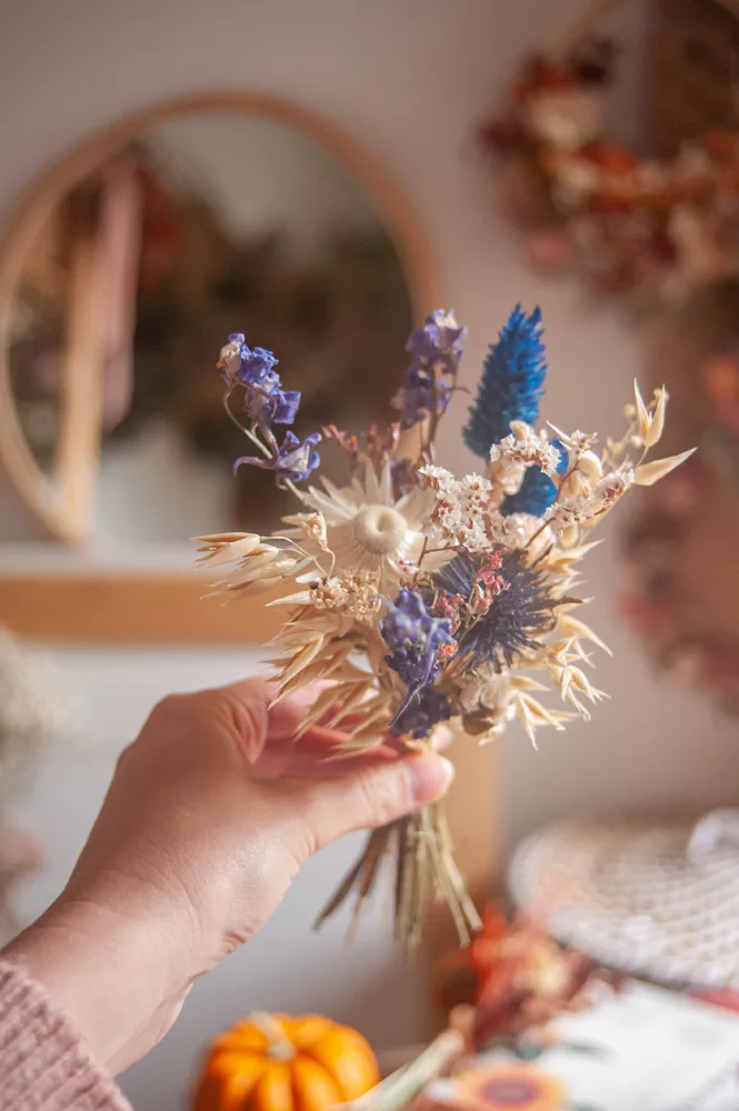 Les ensembles de mini-bouquets sont composés de différentes variétés de fleurs séchées et stabilisés.