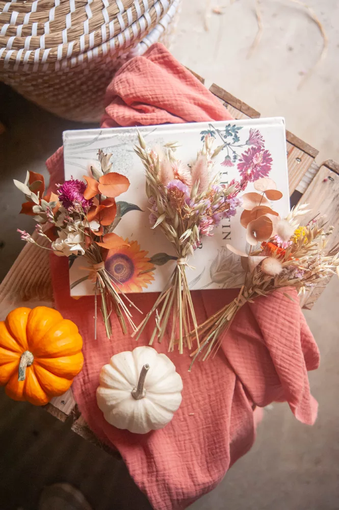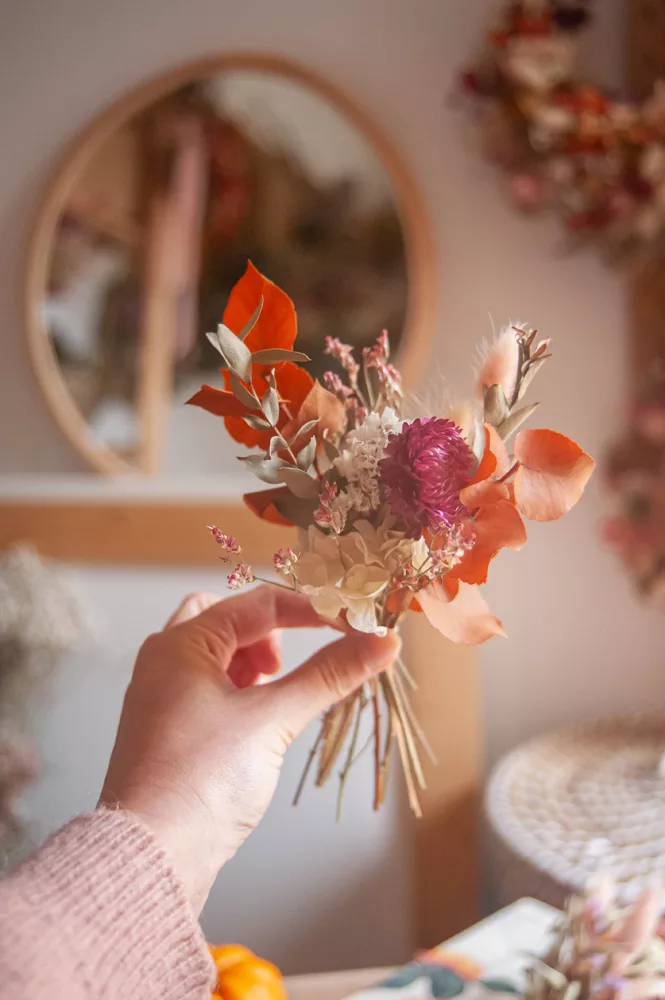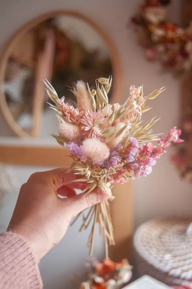 Les ensembles de mini-bouquets sont composés de différentes variétés de fleurs séchées et stabilisés.