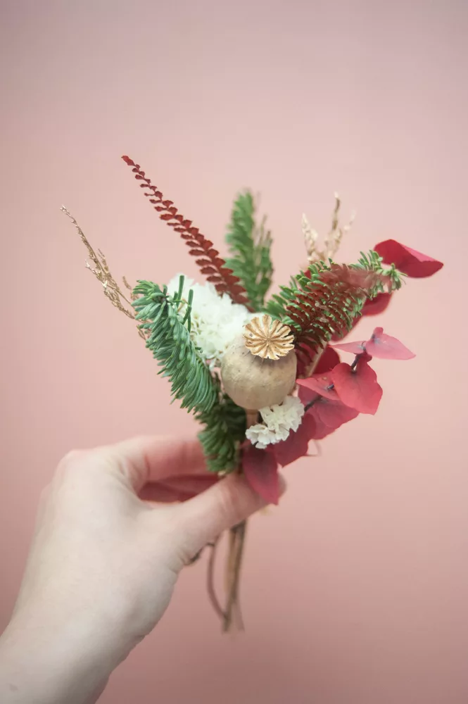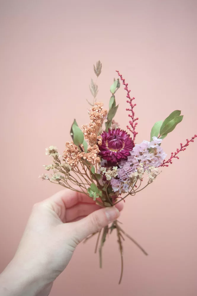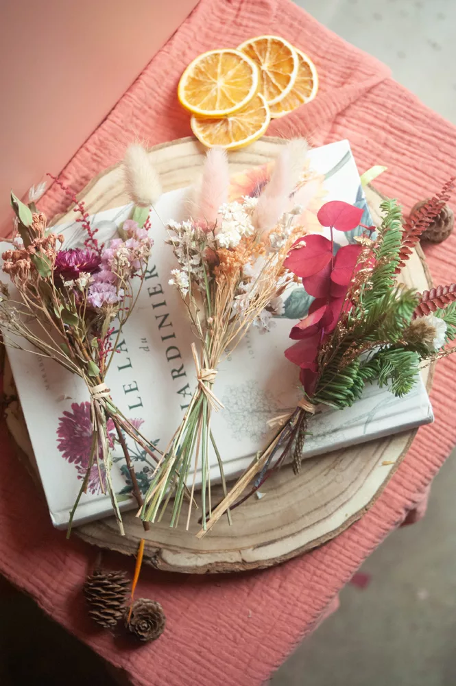Les ensembles de mini-bouquets sont composés de différentes variétés de fleurs séchées et stabilisés.