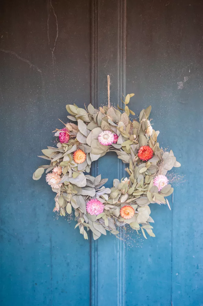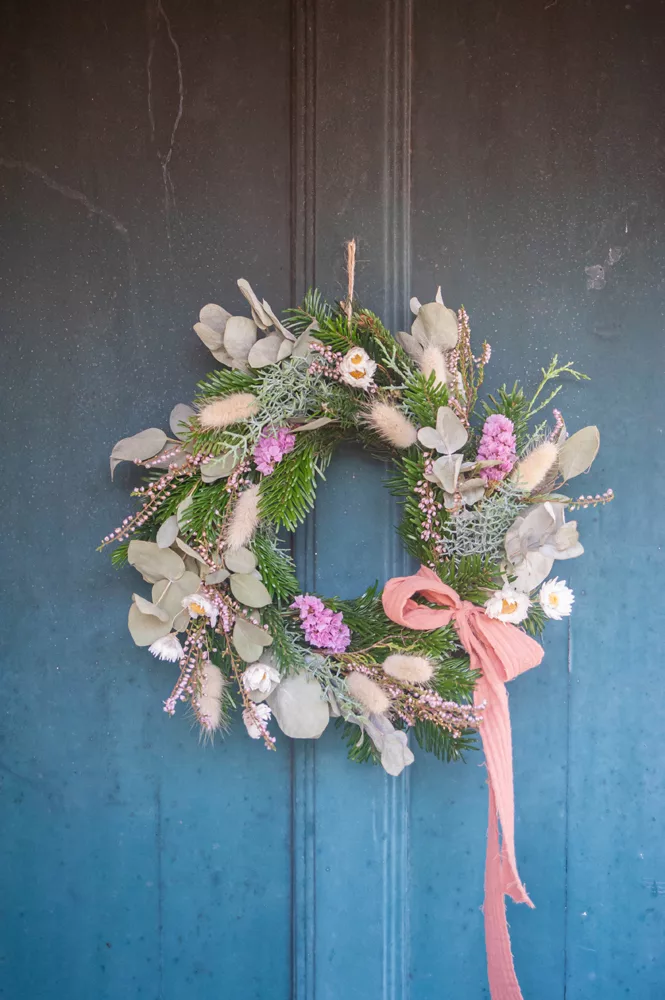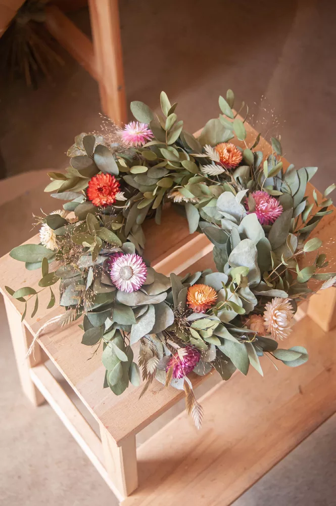 Durable : En choisissant cette couronne, vous optez pour une décoration naturelle et durable. Jusqu’à 80% des fleurs utilisées proviennent de producteurs français, dans une démarche respectueuse de l’environnement et en accord avec le mouvement Slow Flower.