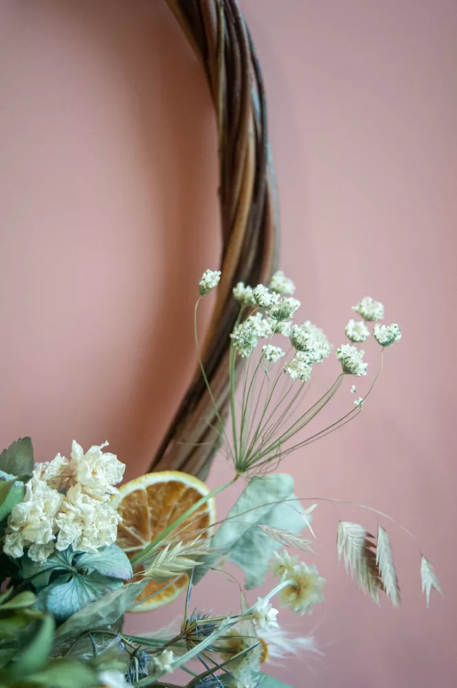 Une création artisanale unique : Toutes mes créations en fleurs séchées sont réalisées dans mon petit atelier situé dans les Hauts-de-France, avec beaucoup de soins et d’attention. Cette couronne est une pièce unique !