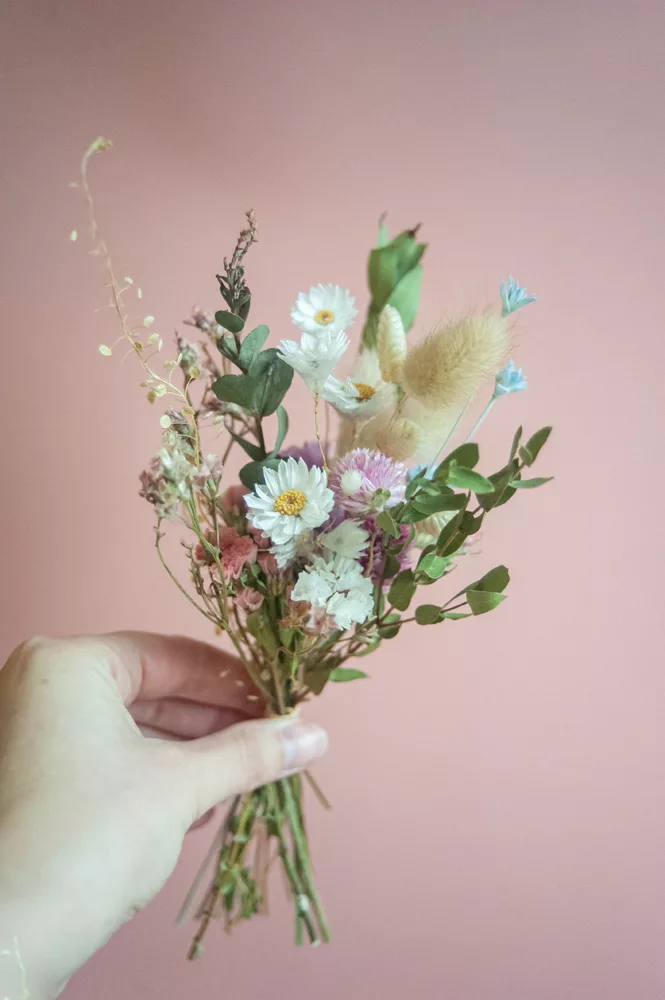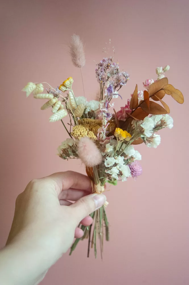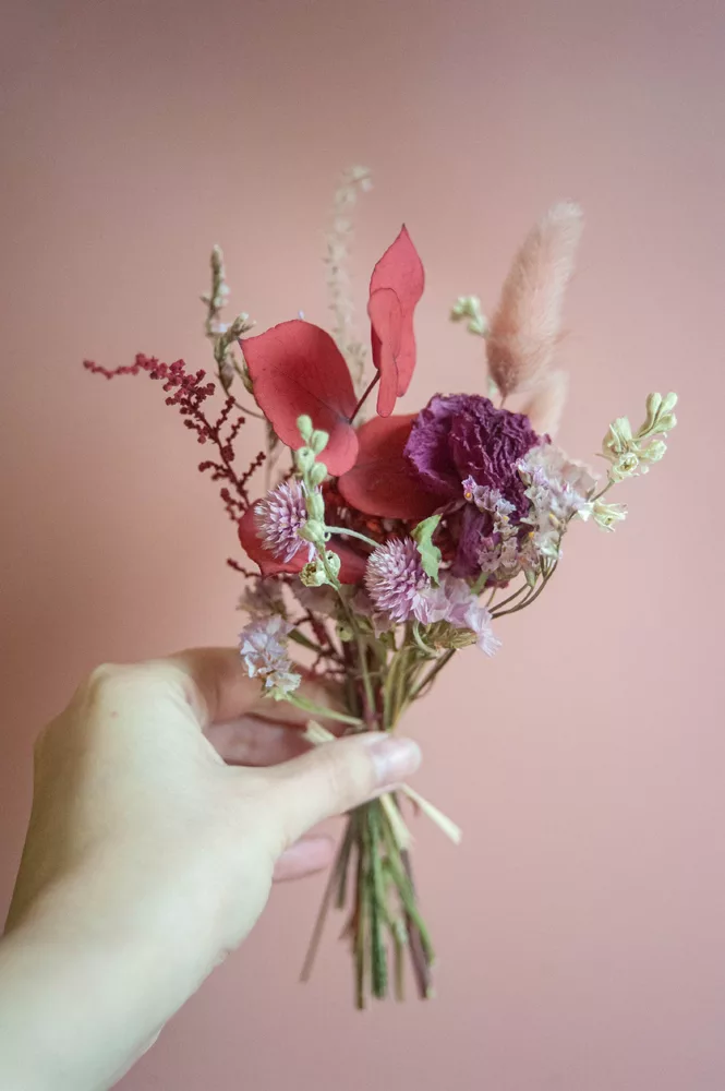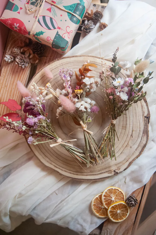 Les ensembles de mini-bouquets sont composés de différentes variétés de fleurs séchées et stabilisés.