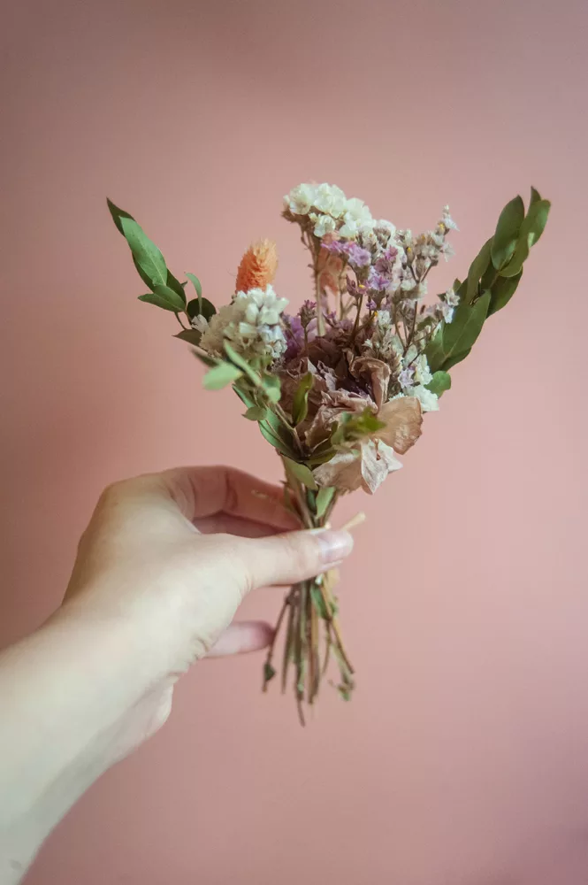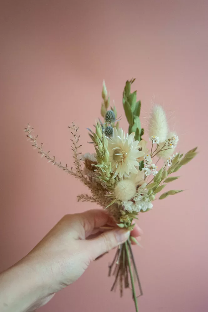 Les ensembles de mini-bouquets sont composés de différentes variétés de fleurs séchées et stabilisés.