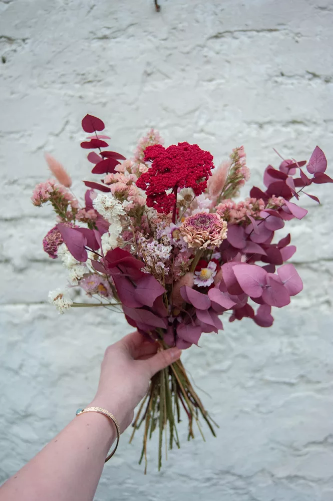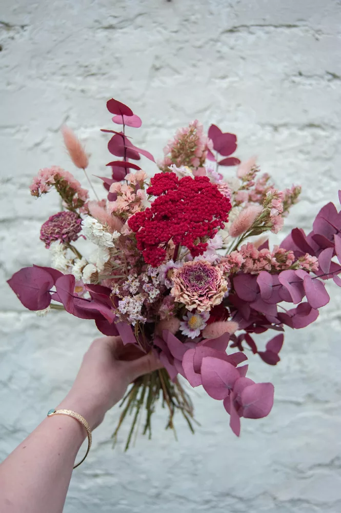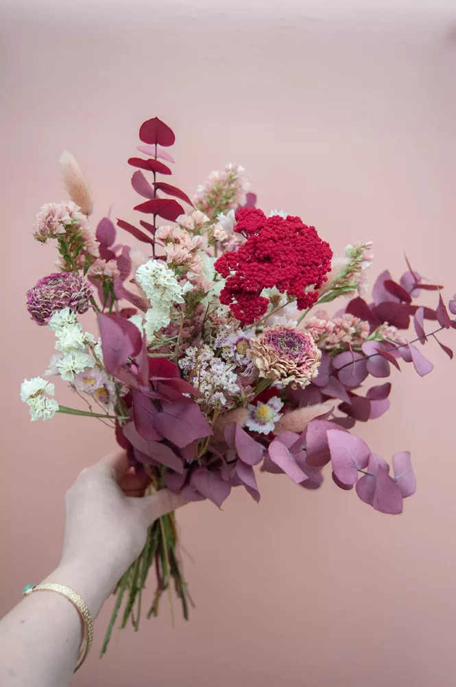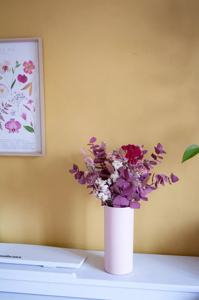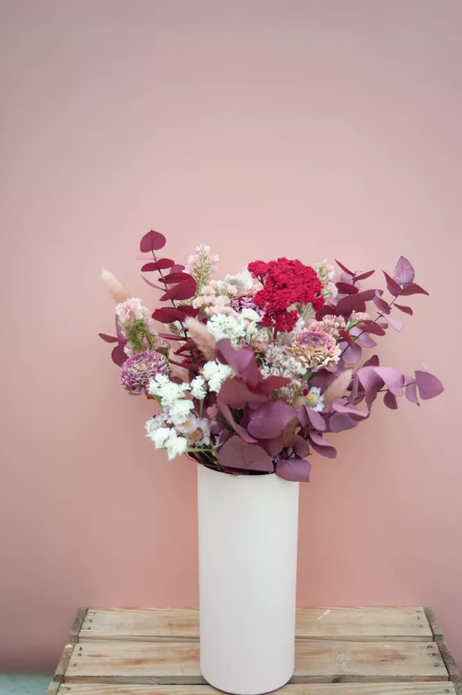 Les avantages des fleurs séchées : Un bouquet qui dure plusieurs mois, voire plusieurs années ! Fini les bouquets qui fanent au bout d’une semaine ! Vous investissez dans une décoration durable et responsable. En effet, entre 60 % et 80 % des fleurs proviennent de producteurs français, dans le respect du mouvement Slow Flower.