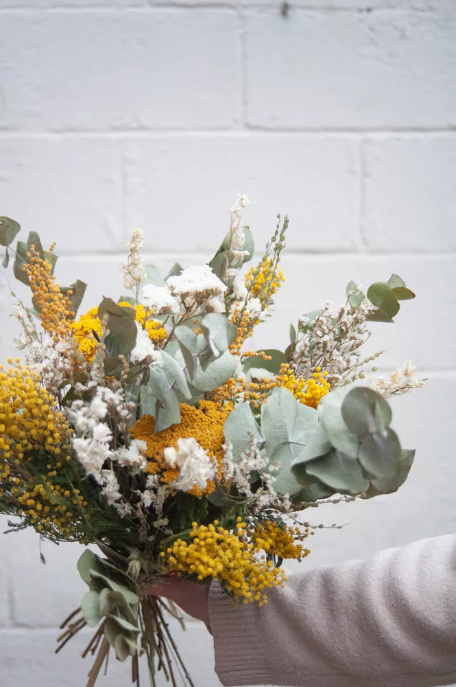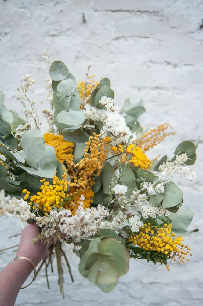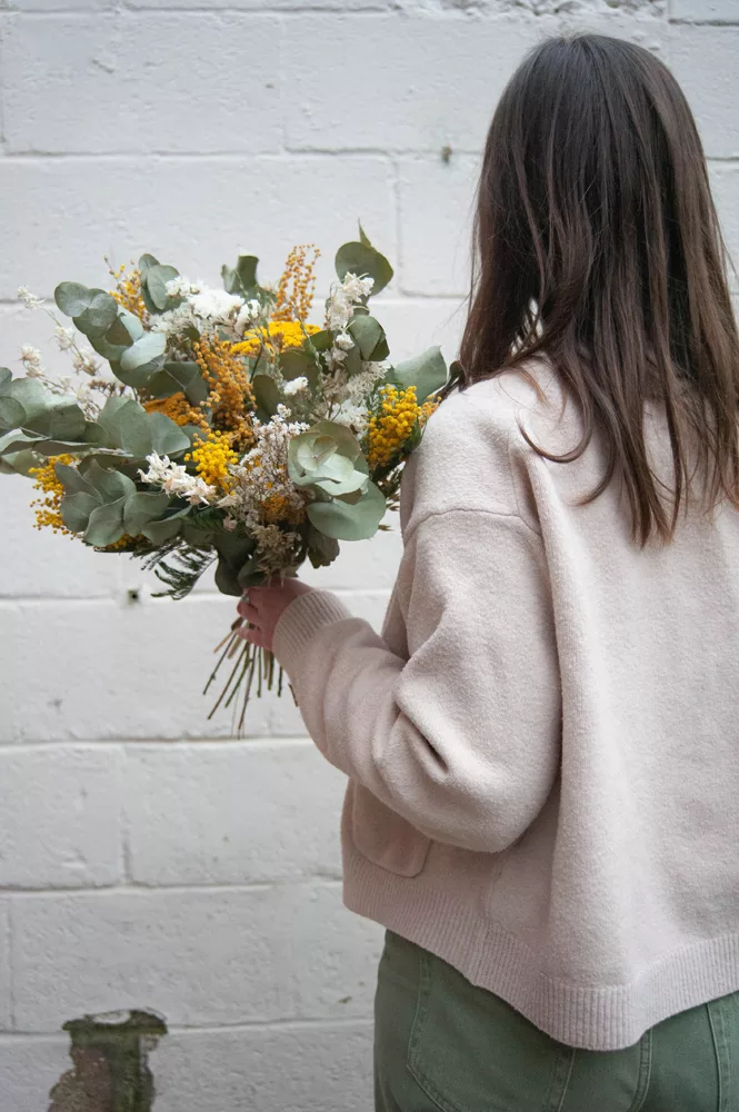 Sunny est un bouquet réalisé 100% en fleurs séchées. J’ai voulu lui donner des tons lumineux, naturels et doux, pour apporter une petite touche colorée à la maison pendant l’hiver.