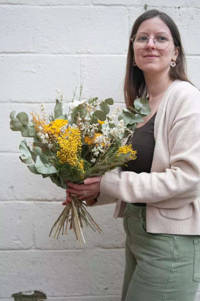 Je m’appelle Marie, je suis fleuriste depuis 9 ans, passionnée par la poésie des fleurs séchées et des saisons. Depuis mon atelier, je crée avec soin des pièces uniques, durables et pleines de douceur.