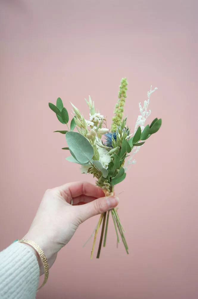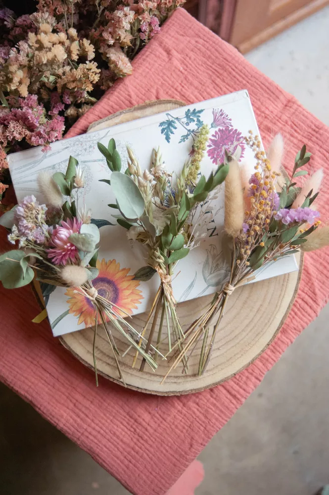 Les ensembles de mini-bouquets sont composés de différentes variétés de fleurs séchées et stabilisés.