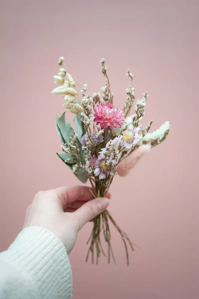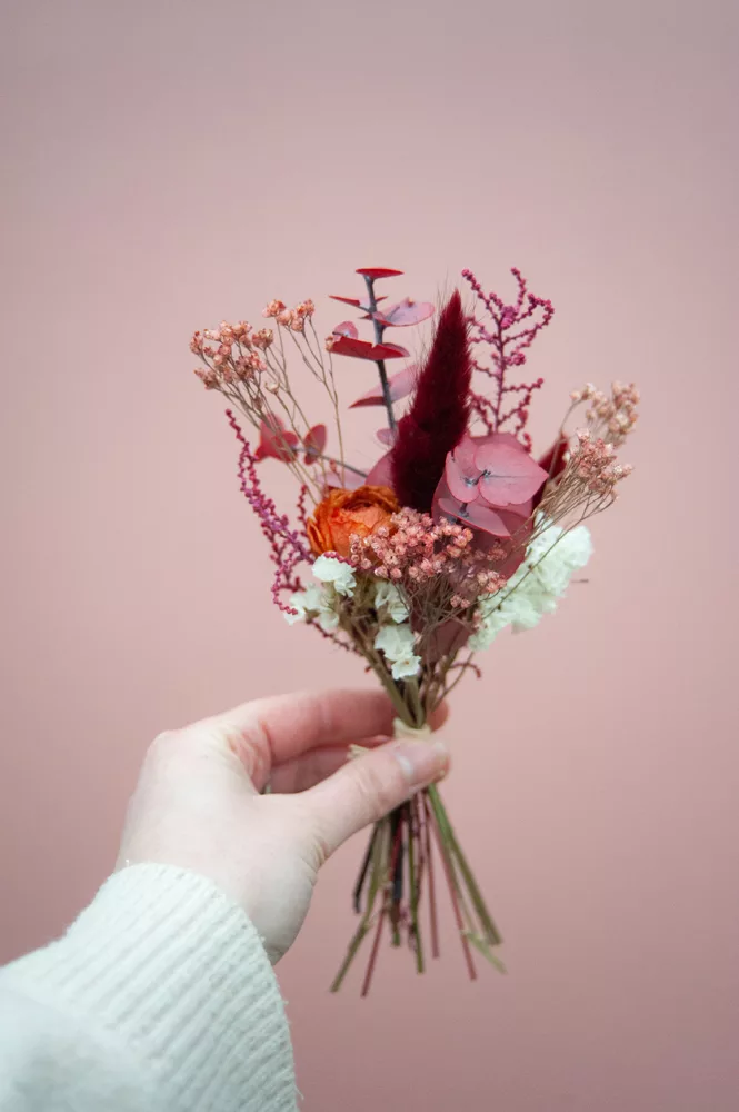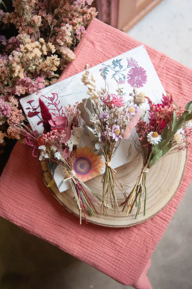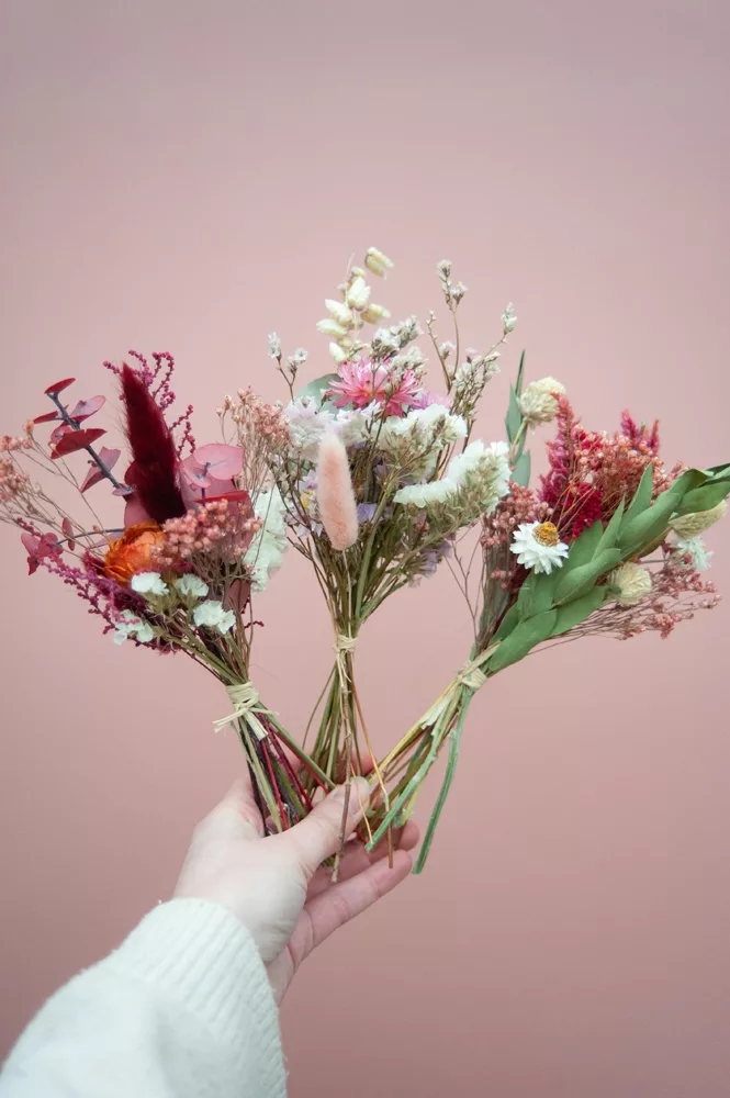 Les ensembles de mini-bouquets sont composés de différentes variétés de fleurs séchées et stabilisés.